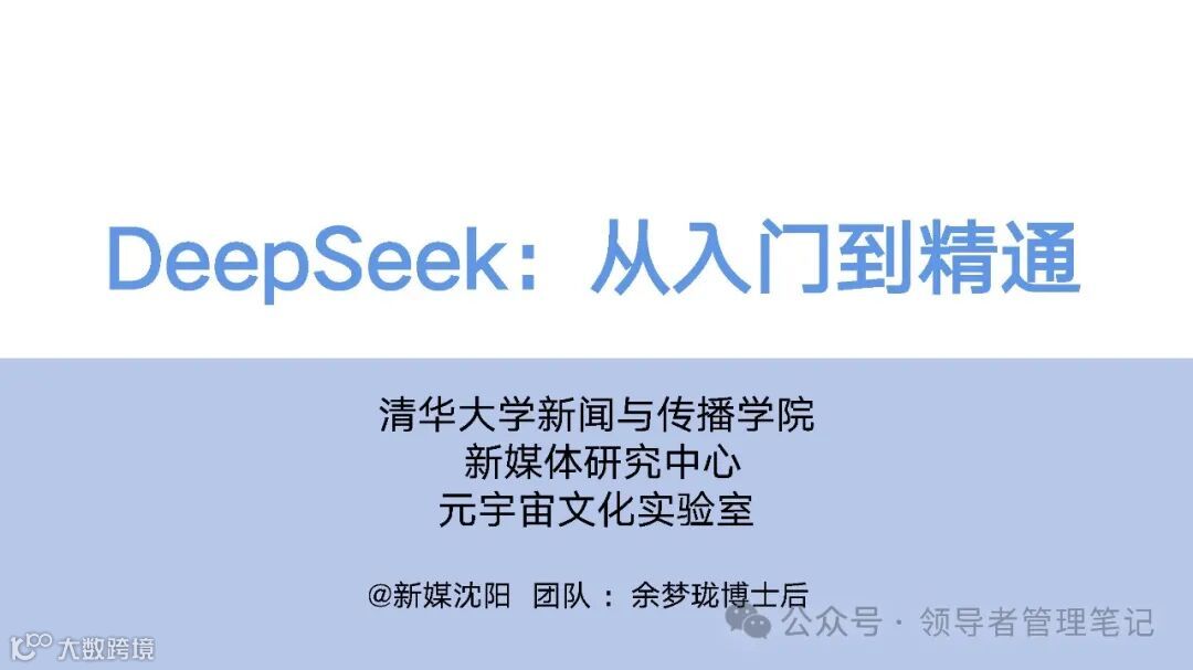 清华大学出品:DeepSeek从入门到精通 领导者管理笔记