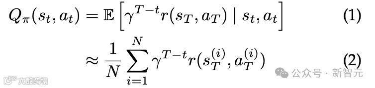 可以通过采样N条推理链直到终端状态,如公式(2)所示,并平均通过深度折扣的终端奖励来近似Q值。