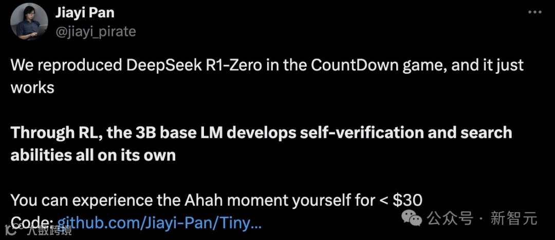 来源:新智元 作者编辑部HYZ 原标题《全球掀DeepSeek复现狂潮!硅谷巨头神话崩塌,30刀见证啊哈时刻》