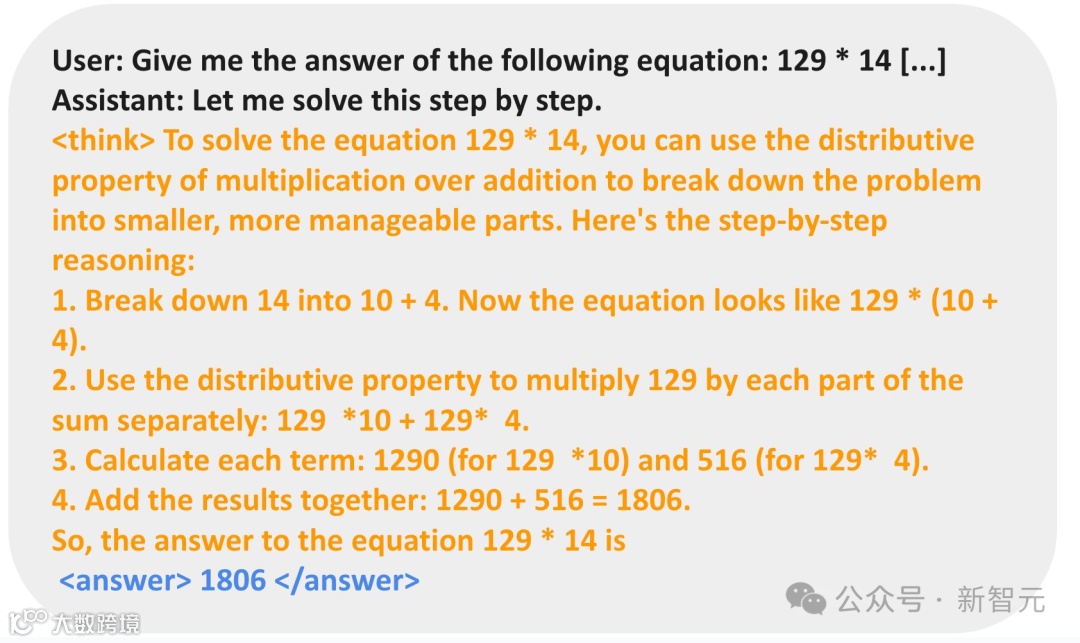对于数字乘法任务,模型反而学习使用分布规则分解问题,并逐步解决