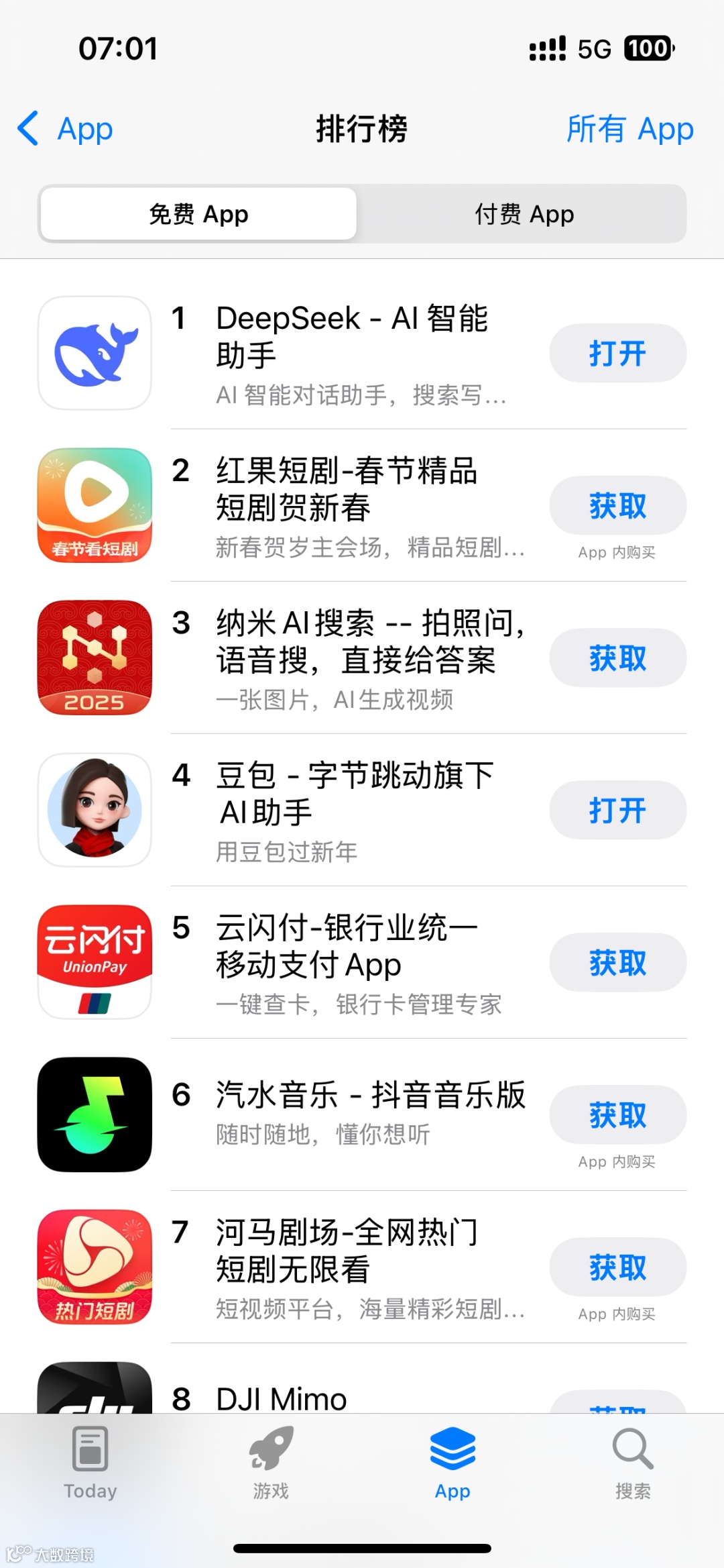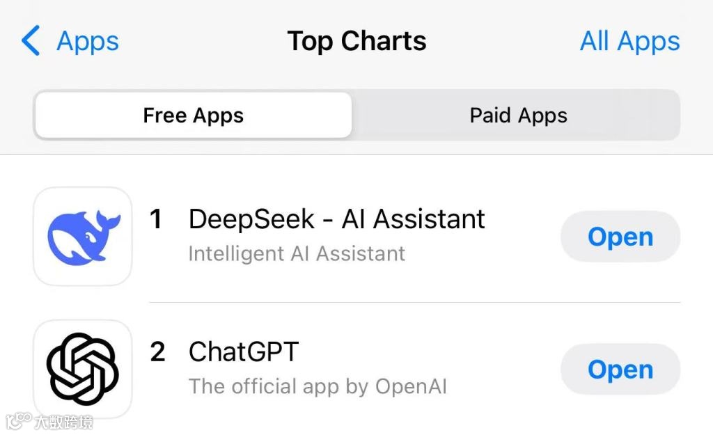(编者注:1月27日,Deepseek应用登顶苹果中国地区和美国地区应用商店免费APP下载排行榜,在美区下载榜上超越了ChatGPT。此外,据苹果APP Store中国区免费榜,Deepseek成为中国区第一