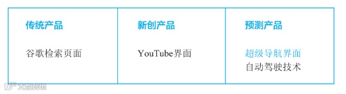 比如,“谷歌搜索”作为谷歌的传统产品,YouTube 视频作为其新创产品,同时掌握到谷歌正在进行的汽车自动驾驶实验相关信息后进行综合考虑: