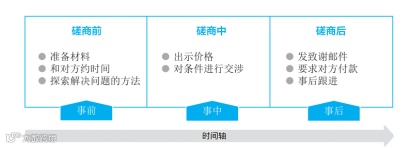 例如,在做一件事情时,我们可以将其划分为事前、事中和事后三种状态。假设你近期要与合作对象进行一场商业磋商,那么按照事前、事中、事后的模式你所采取的具体措施则如下图所示: