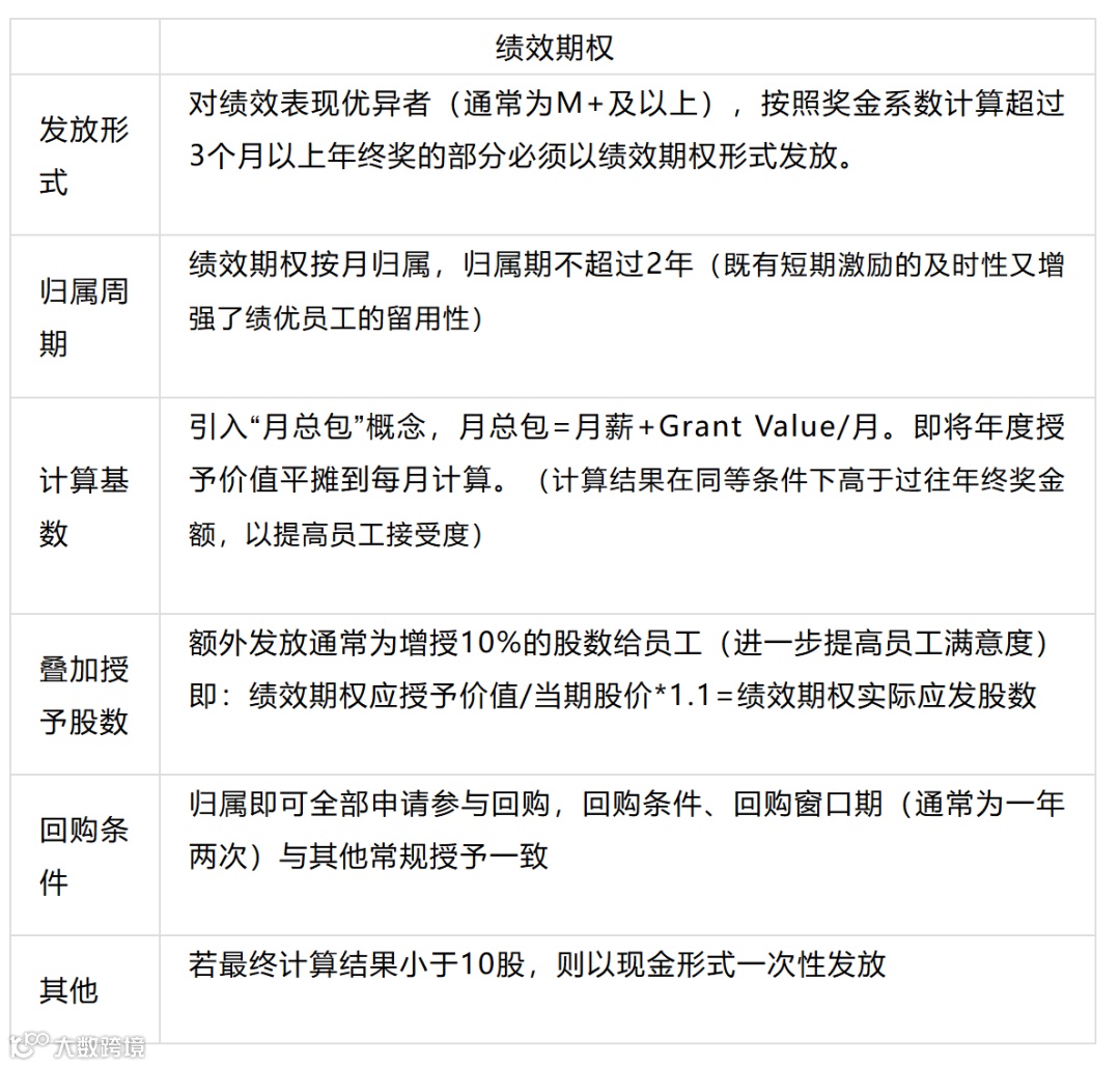 对于低于 10 股的绩效激励期权,将统一以现金形式一次性发放,按照最新回购价计算,10 股价值约 1.3 万元。