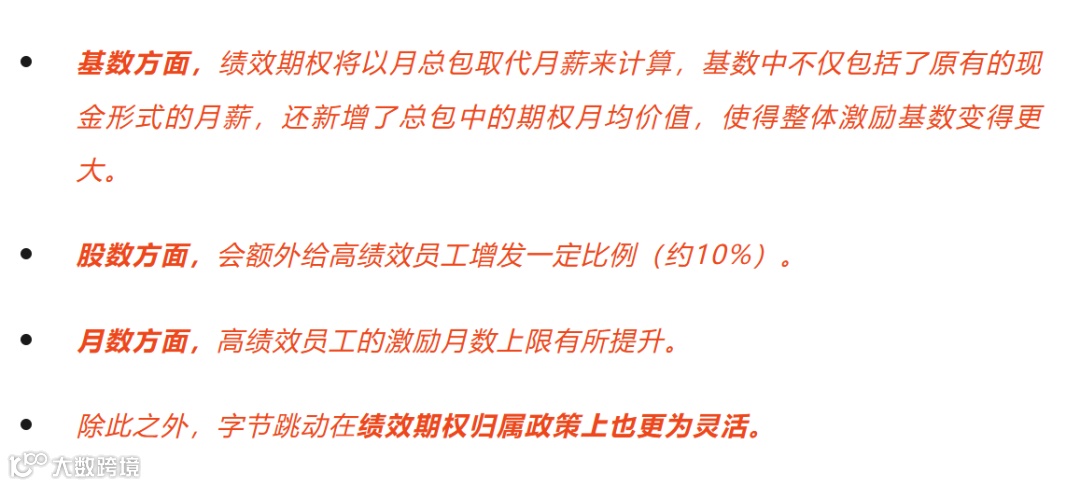 其中,现金奖金的最高额度设定为 3 个月的月薪水平,而对于绩效表现卓越的员工,则会给予绩效期权作为奖励,并且在此次更新中,期权的激励程度得到了显著提升。