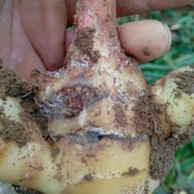 姜瘟病(细菌性青枯病):这是云南生姜的 “头号大敌”,发病初期叶片先从下部开始发黄,叶尖卷曲干枯,随后整株萎蔫。茎基部会出现水渍状腐烂,散发腥臭味,切开块茎可见维管束变褐。