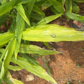 蓟马:吸食生姜叶片汁液,导致叶尖卷曲、发黄干枯,叶片背面出现褐色小点,严重时叶片畸形。