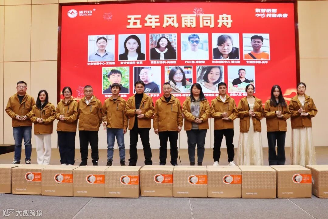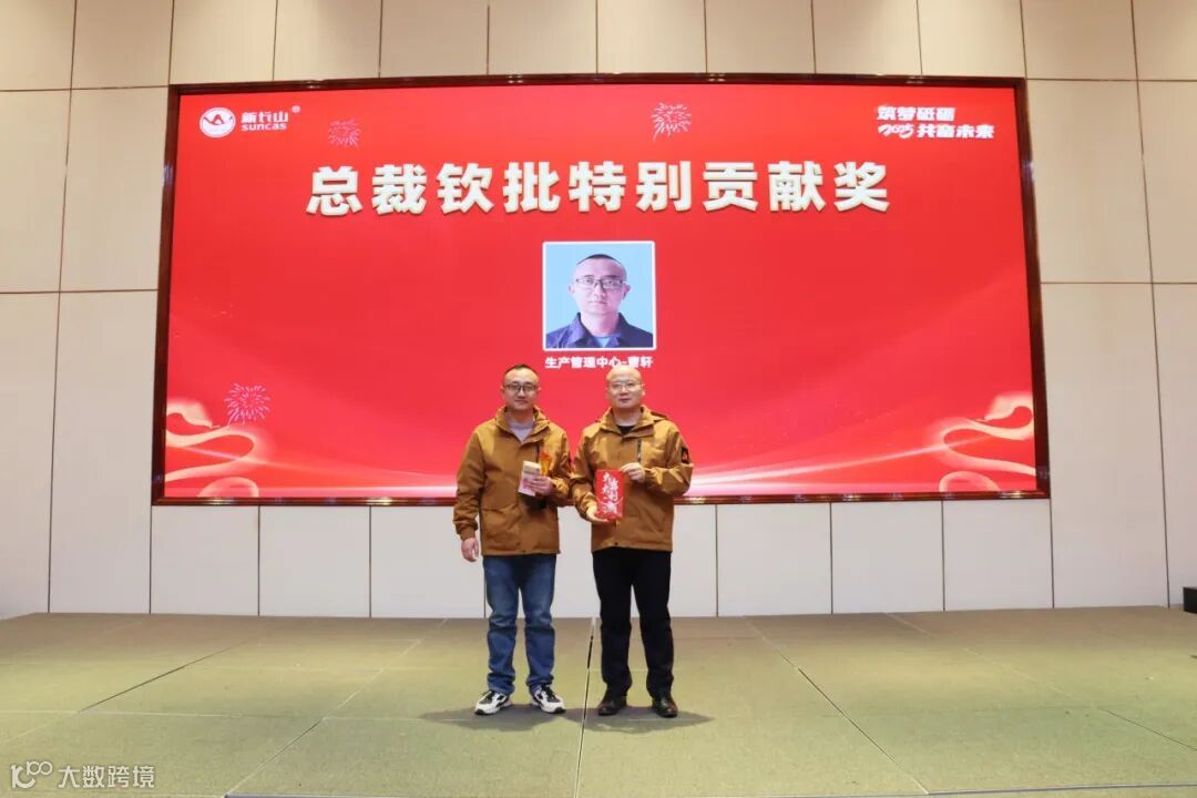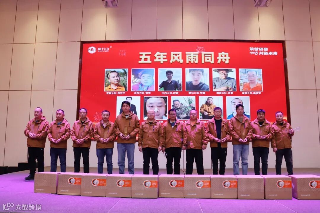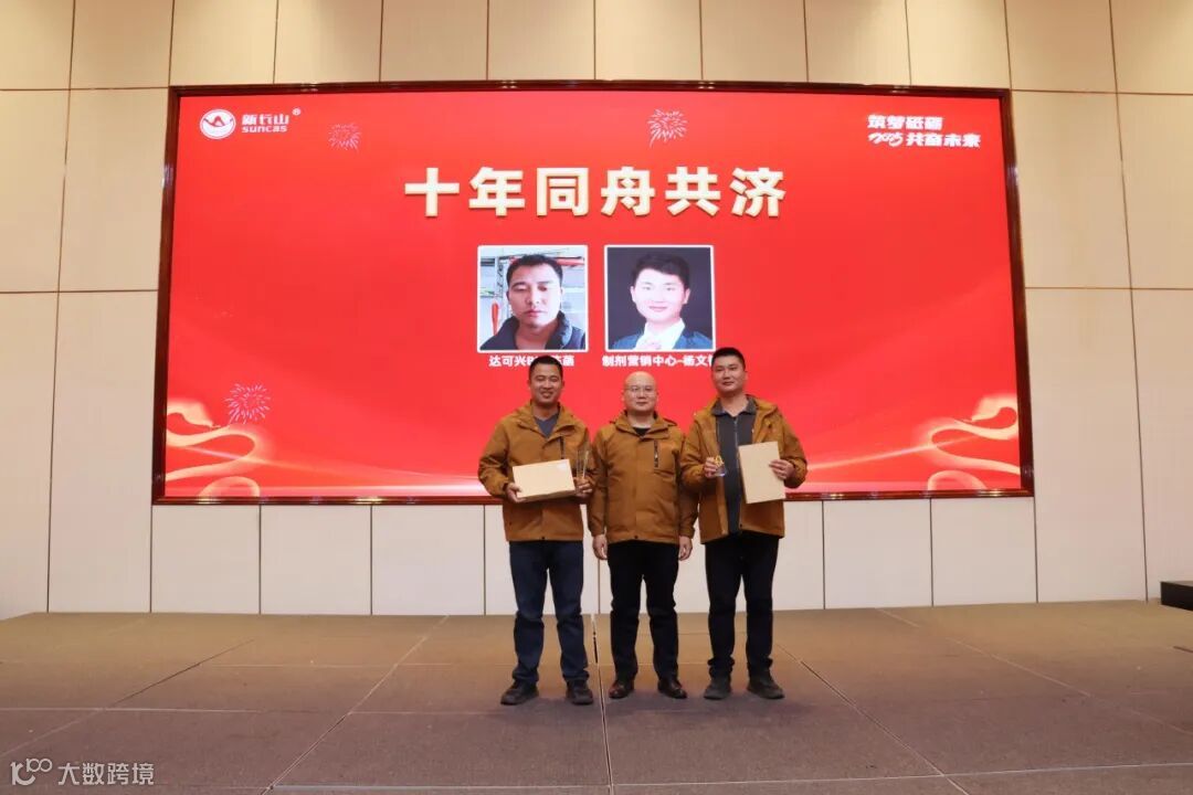 在颁奖环节,优秀员工奖、营销精英奖、五年风雨同舟奖、十年同舟共济奖,一份份荣誉证书与奖杯递到获奖者手中。他们是全体新长山人的榜样,凝聚着奋进力量。