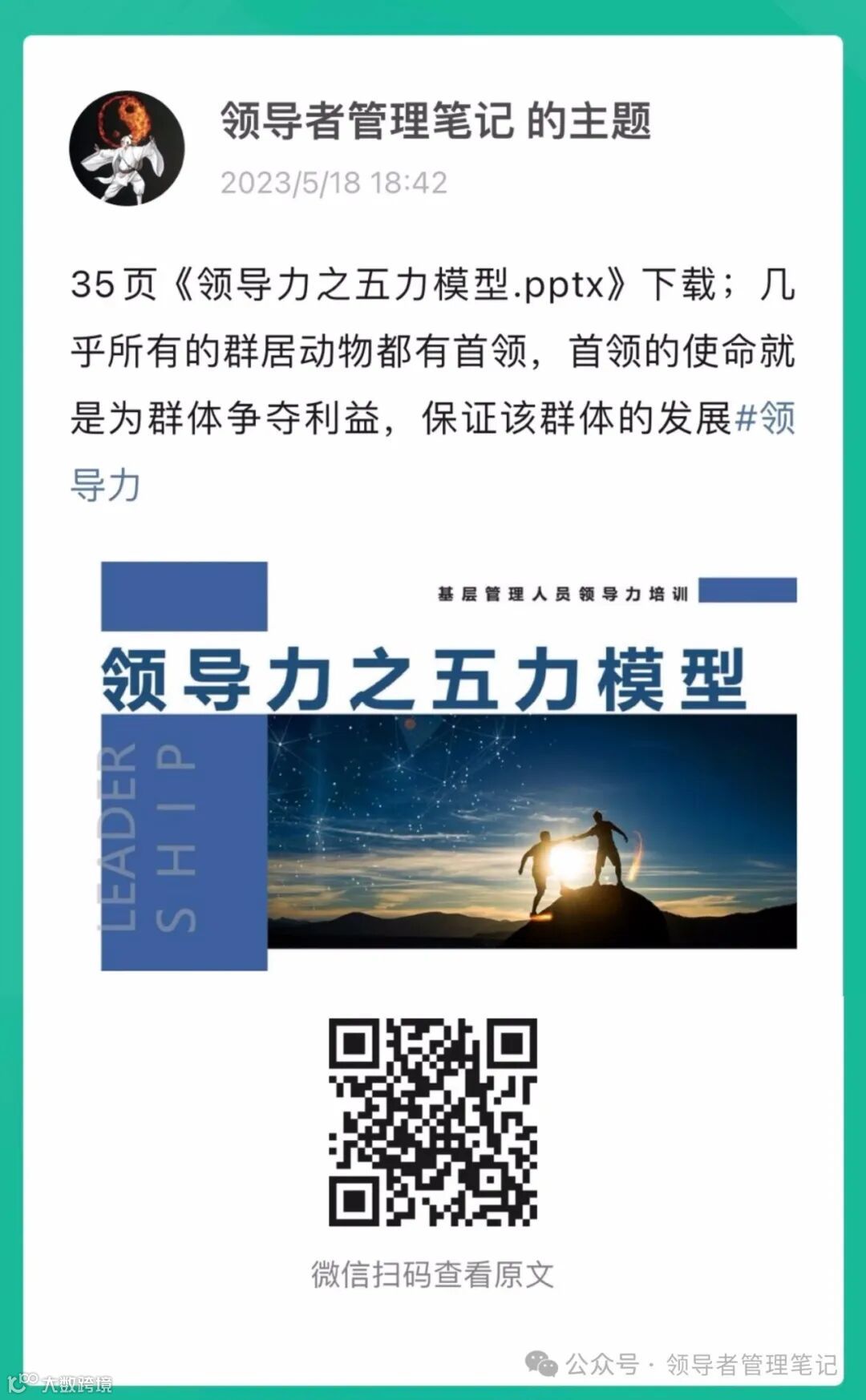 文章来源 :领导者养成笔记「ID:GoToLead 」,转载请公众号回复“转载”