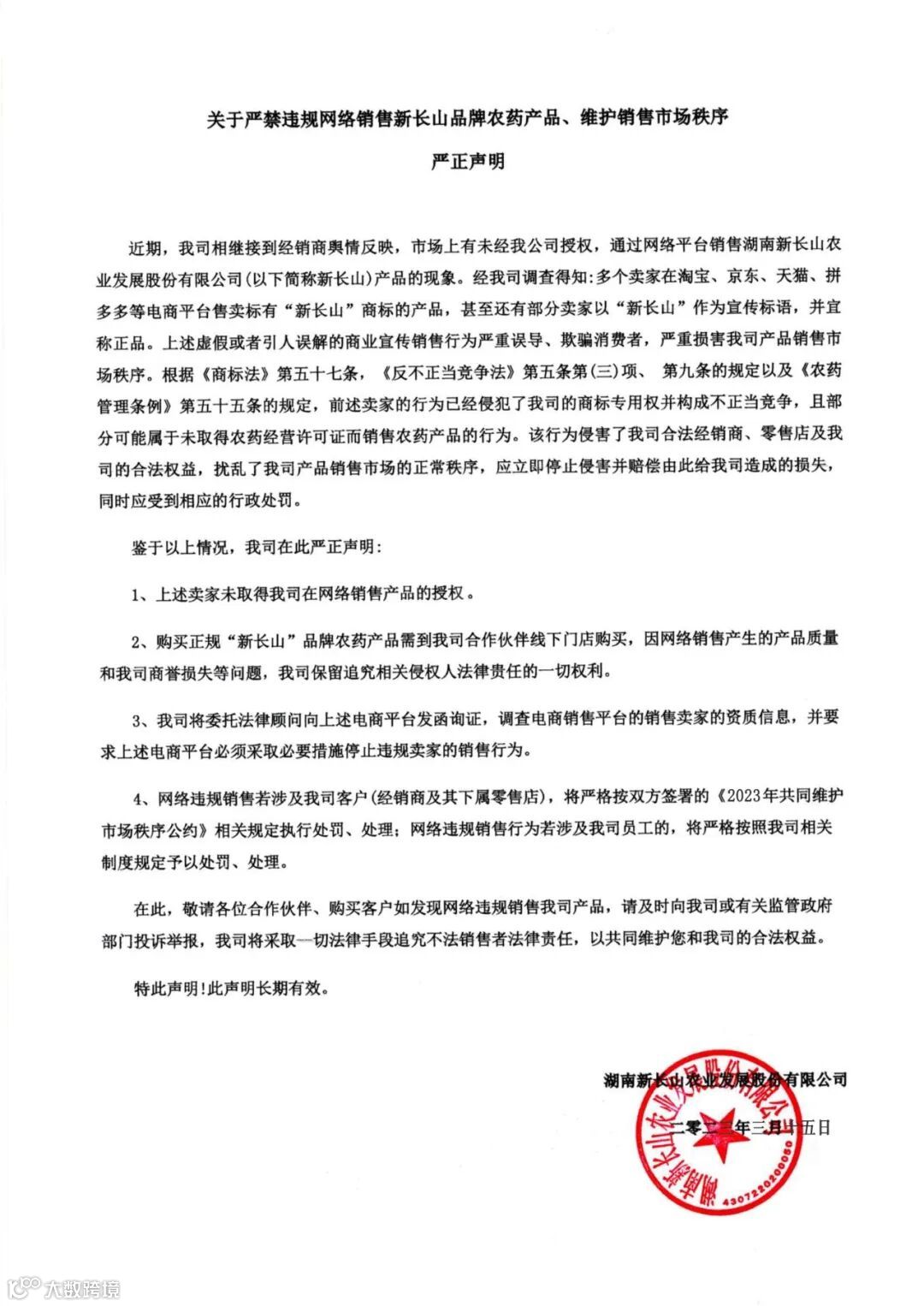 近年来,随着国内电商平台的迅速发展,不少网店在未经我司授权的情况下通过电商渠道进行线上销售我司产品,严重损害了我司的合法权益。为维护市场秩序及我司权益,特出此声明!