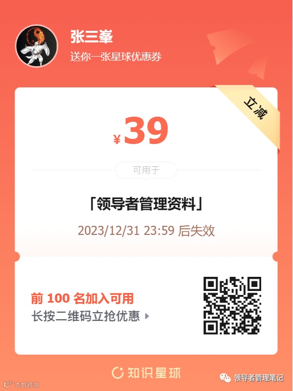 关注我,与100万领导者一起学组织和管理。张三峯,15年500强高层管理经验,“人人都是领导者“理念推动者,“商业新知”管理十佳创作者,多家公司管理咨询顾问。