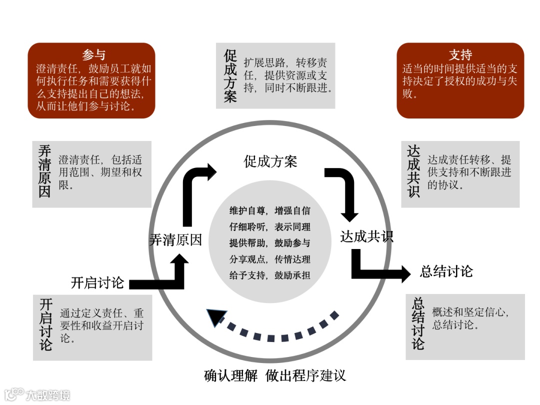 使用下图作为如何在授权谈话中使用这些互动技巧的参考。