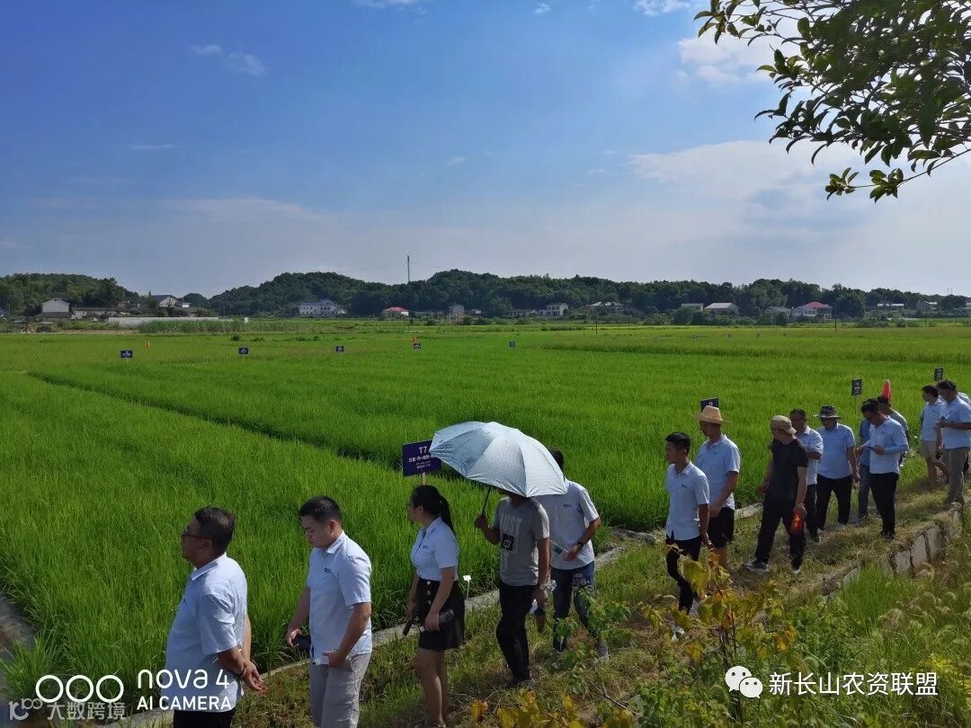 经作中心在研发中心禹晶经理的带领下,观摩湖南水稻田抗性杂草治理技术示范效果。