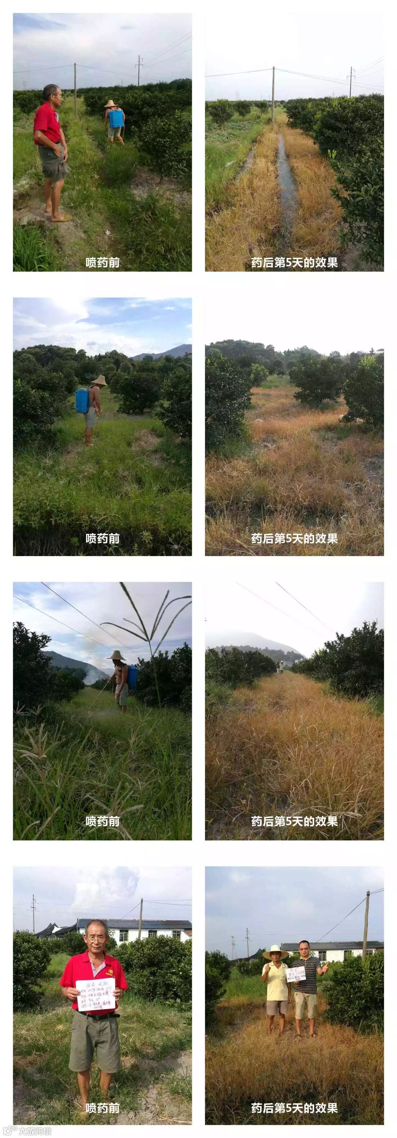 六、客户反映情况:客户非常满意,五天见效快,效果好。比市场上常规草铵膦快1-2天。对比药剂是零售店蒋老板店子买的草铵膦,同样是蒋老板和蒋大哥亲自配药和打药,第5天观察效果截然不同。