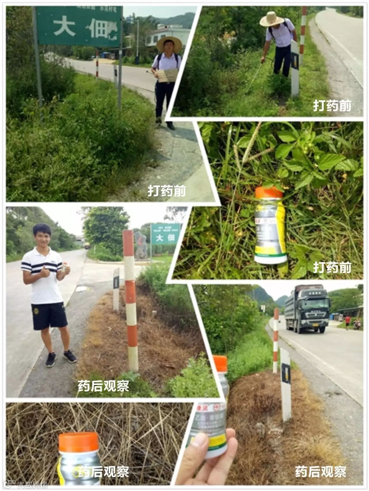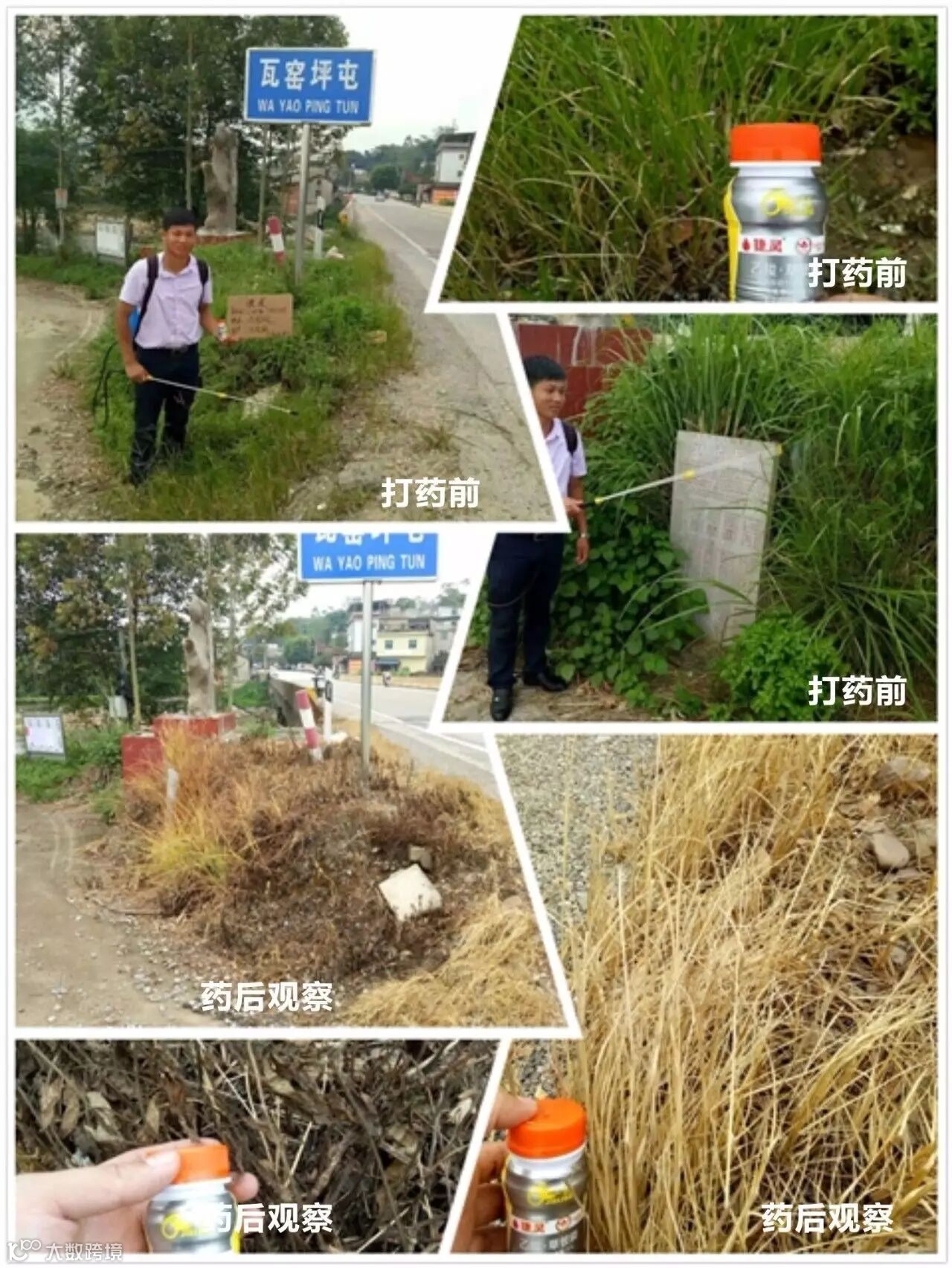五、示范药剂:捷灵一瓶一壶水. 红太阳百草枯一瓶一桶水