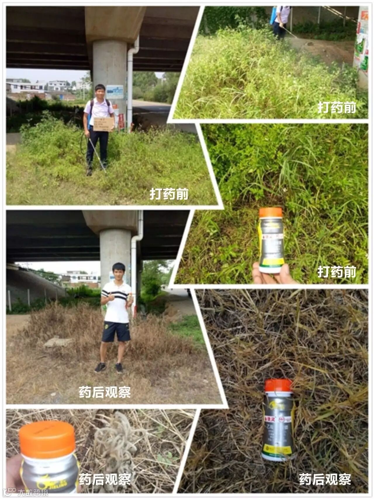 除草难点:杂草处于高速大桥下,温度低,杂草长得很高,效果较好,且死草速度快,对于牛筋草效果也较好。