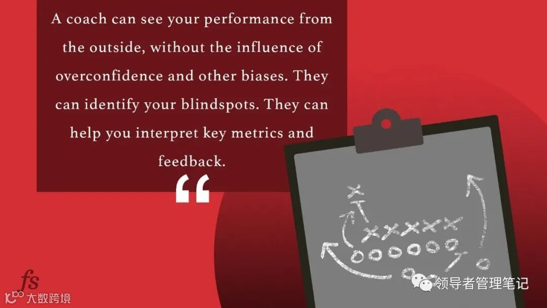 教练可以从外部看到你的表现,而不会受到过度自信和其他偏见的影响。他们可以找出你的盲区,帮助你解释关键指标,并给予你正确的反馈。