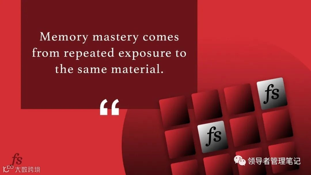 记忆力的掌握来自于对同一材料的反复接触。间隔效应指的是,如果我们分多次学习知识和概念,并且每次学习之间的间隔时间越来越长,那么记忆效率越高且记忆力越牢固。学习新信息最有效的方法就是间隔重复。它几乎适用于学习任何东西,而且相关研究已经提供了有力的证据,证明它对所有年龄段的人,甚至动物都有效。