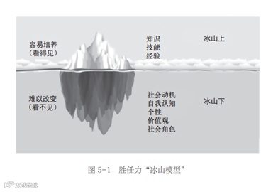 “看得见的能力”包含知识、技能、经验,“看不见的素质”包含社会动机、自我认知、个性、价值观、社会角色等。该模型要求在选拔人才时,不仅要评价外在能力,还要关注内在素质。