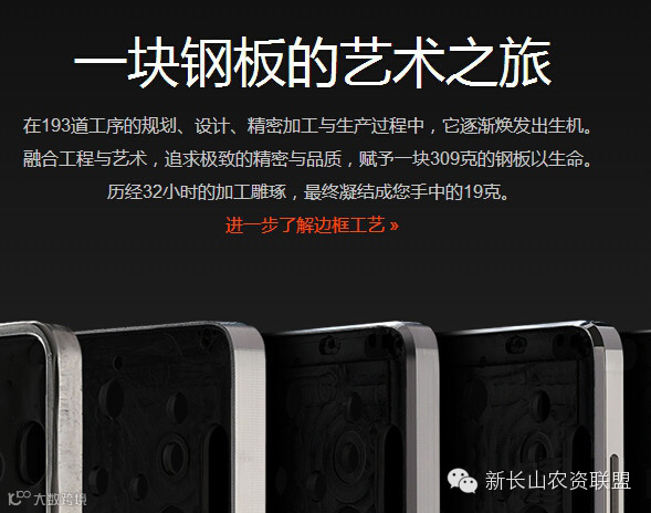 互联网初创公司无不把产品分割成一个个独立属性。小米先是给我们普及了CPU丶GPU等,到了小米4,竟然开始给我们普及材料学知识—“小米4,奥体304不锈钢,8次CNC冲压成型”。