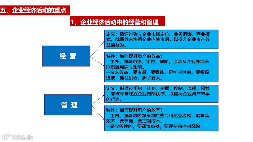 第二,企业经营管理过程中的经营、管理,以及经营和管理的关系。