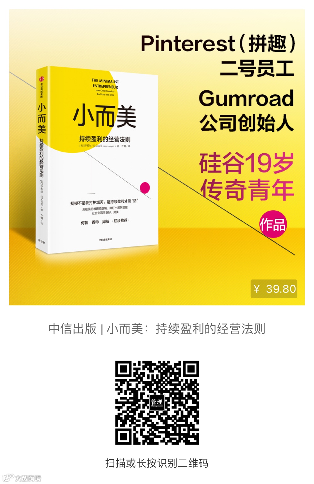 他把打造小规模“极简企业”的6条法则总结在了自己的新书《小而美》当中,希望能给当下的创业者启发。
