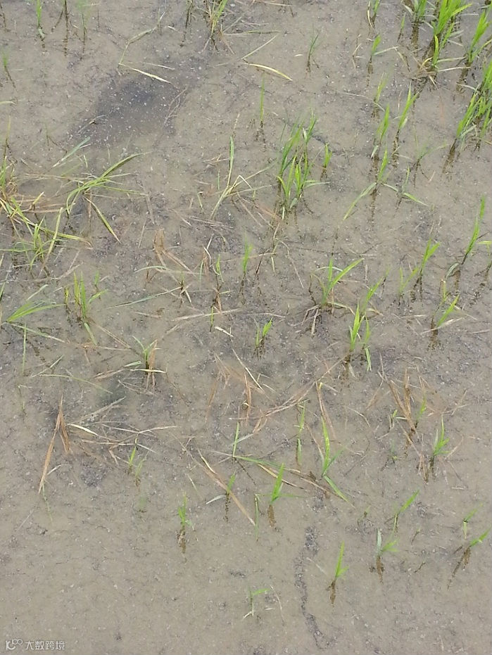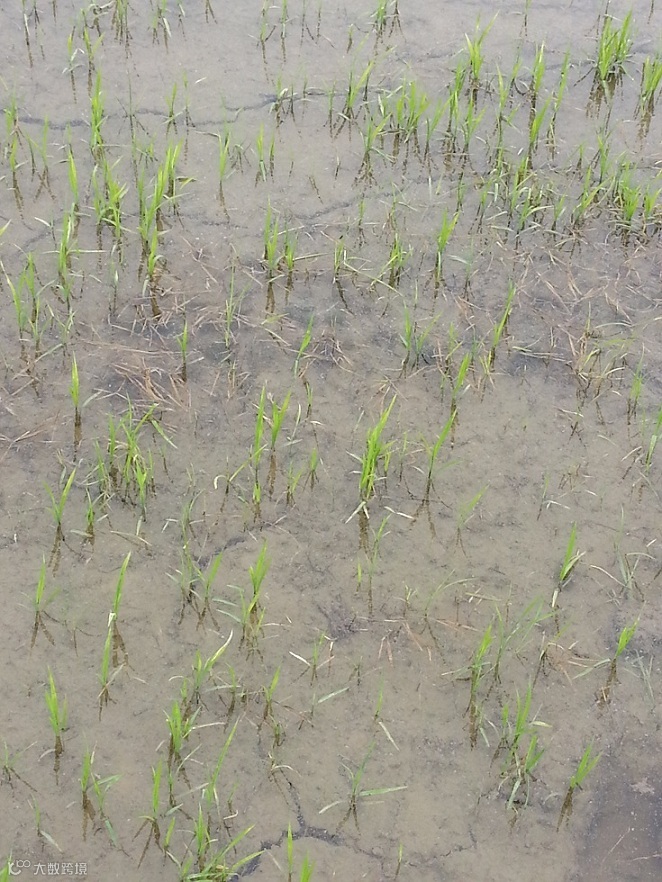 2014年4月28日,阴天,平均温度16°。禾苗三叶一心。七星庵八组种田大户冯师傅的直播田稗草等严重,全田只见稗子和杂草,不见禾苗。被当地其他种植户评为“天下第一稗田”。下面来看看“稗田”。
