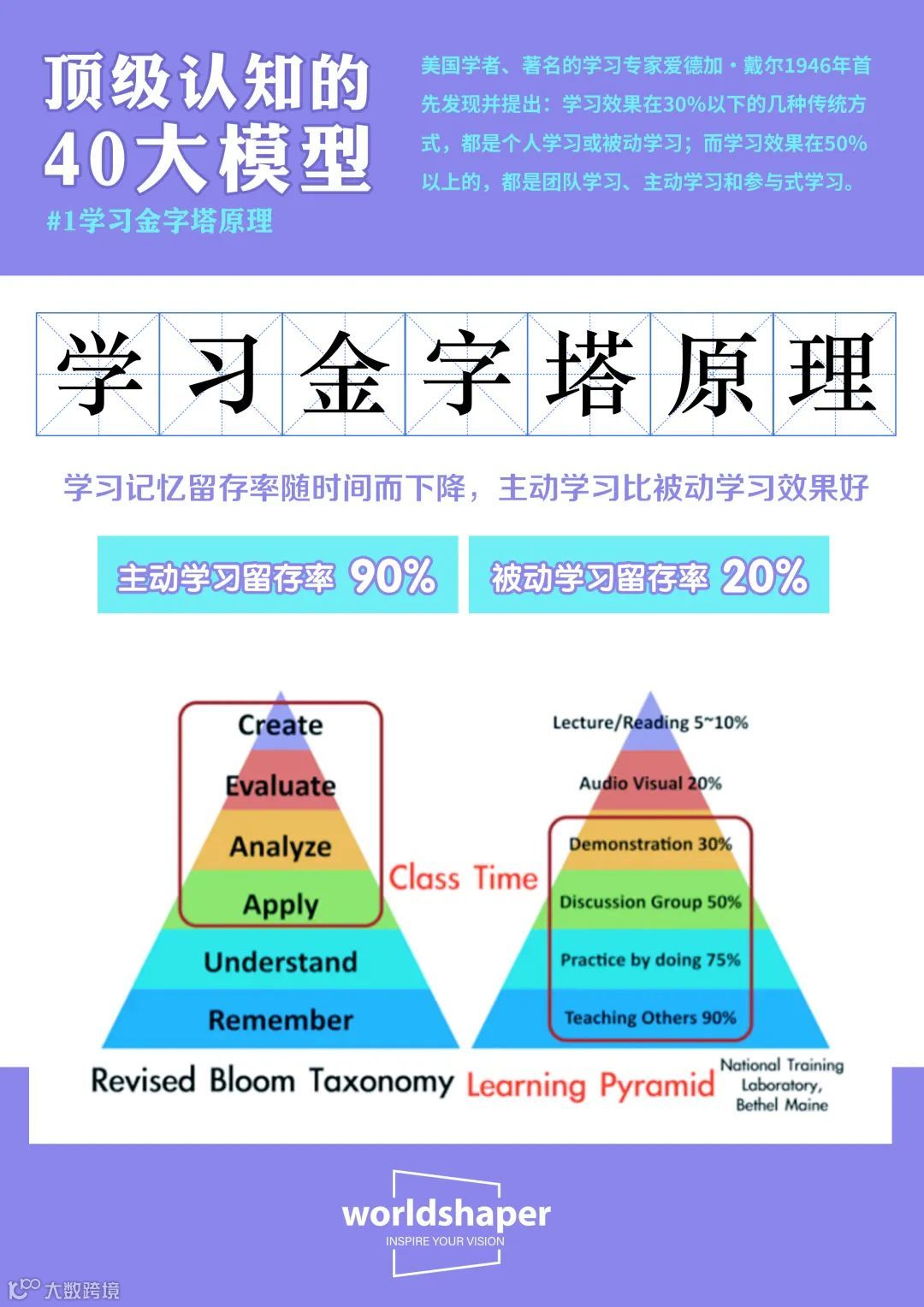 善用学习金字塔模型第七层——教给他人,以教为学,知行合一,就能呈现绝佳的学习效果。