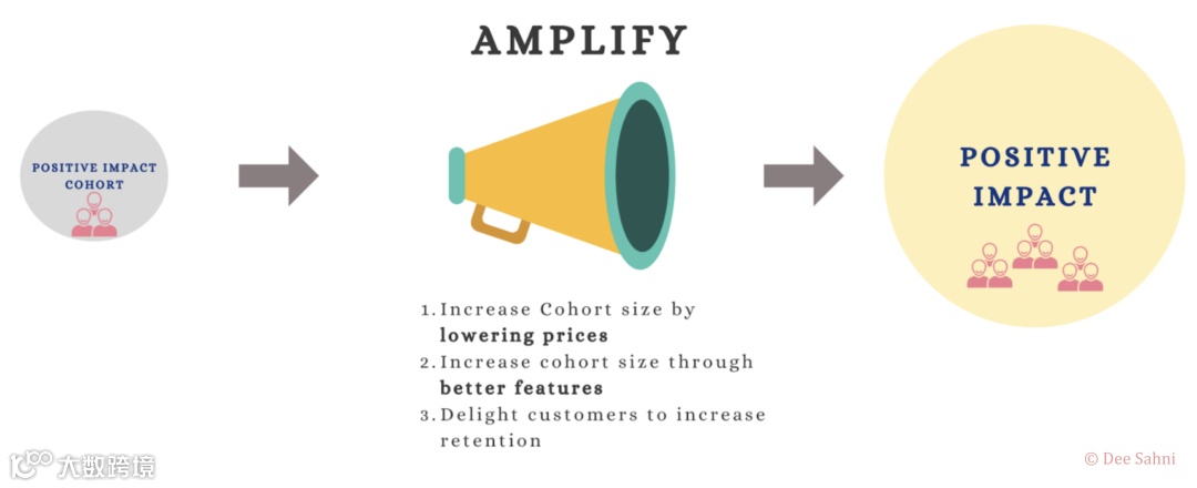 萨尼说道:“当一个群组表现优质时(如高留存率,高LTV群组),你便需要通过增加群组规模或提高留存率(或者两者兼而有之)去扩大其影响力。”常见的策略包括: