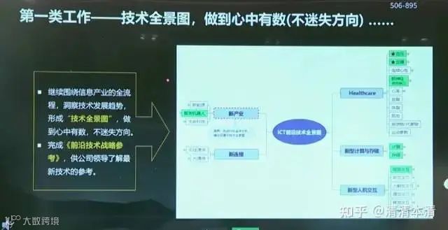 技术洞察分为两类,一类是围绕信息产业全流程,洞察技术发展趋势,形成"技术全景图",给公司高层提供技术发展内刊,主要负责广度;