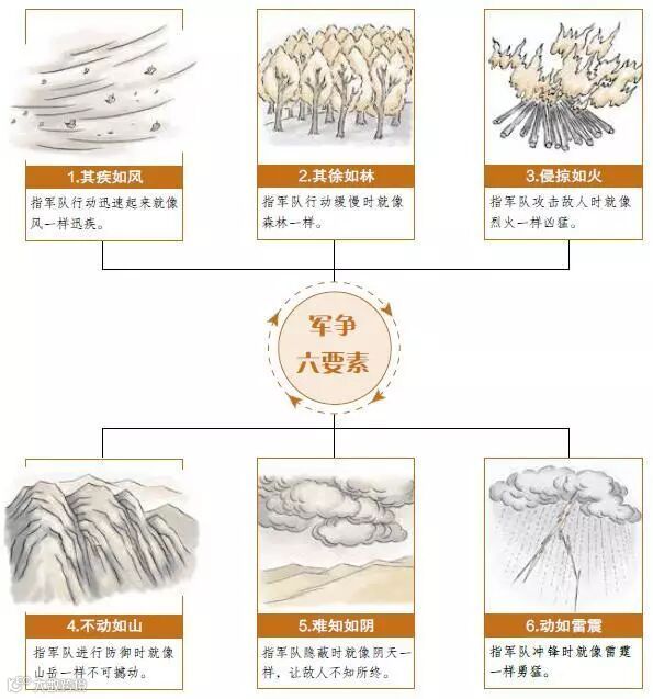 如果一支军队同时具备了“其疾如风、其徐如林、侵掠如火、不动如山、难知如阴、动如雷震”这六种素质,它的综合战斗力一定很强。这样的军队与对手争利,恐怕会每争必胜。
