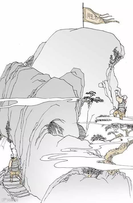 下图中沿山道蜿蜒而上的人所走之路就是“迂”,看起来好像离目标更远,但路途比较平坦,反而能抢先到达山顶。