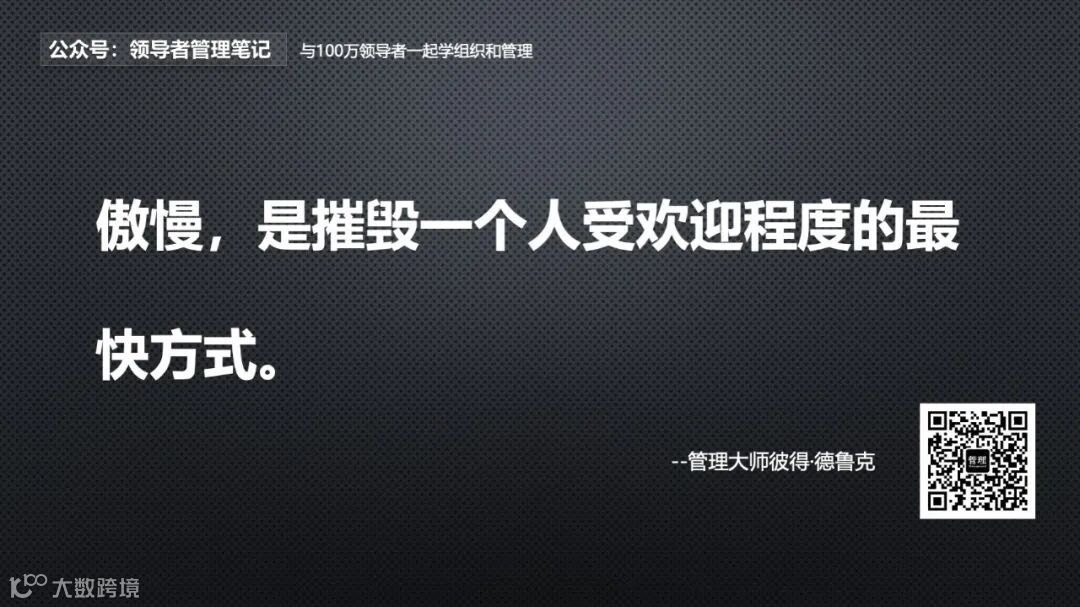 傲慢是摧毁一个人受欢迎程度的最快方式之一。而那些受人尊敬的领导者并不会表现得好像他们比你更优越,因为他们并不认为自己比你更高一等。