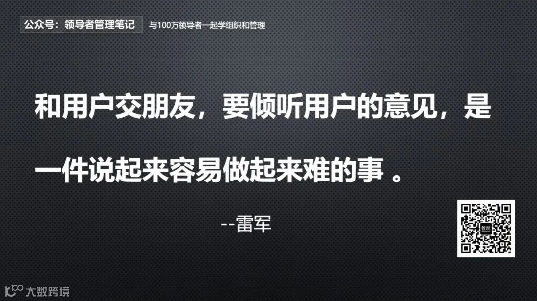 和用户交朋友,由小米提出,也是小米成功的主要原因之一。这其实就是互联网思维指导下的“群众路线”:一切为了群众,一切依靠群众,从群众中来,到群众中去。