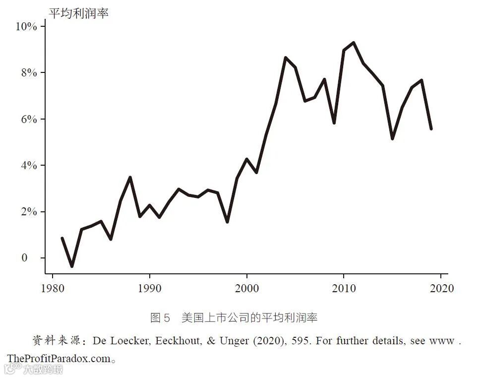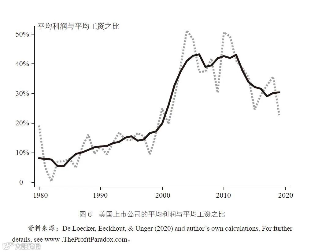 市场支配力的持续上升表明,在企业内部,资金正在从工资部分流向利润部分,进而流到企业所有者的手里。在之前,跟员工工资相比,企业所有者拿到的报酬很少很少;如今,企业所有者拿到的报酬几乎是全体员工工资的一半多。很明显,我们的经济体系已经发生了根本性的变化。
