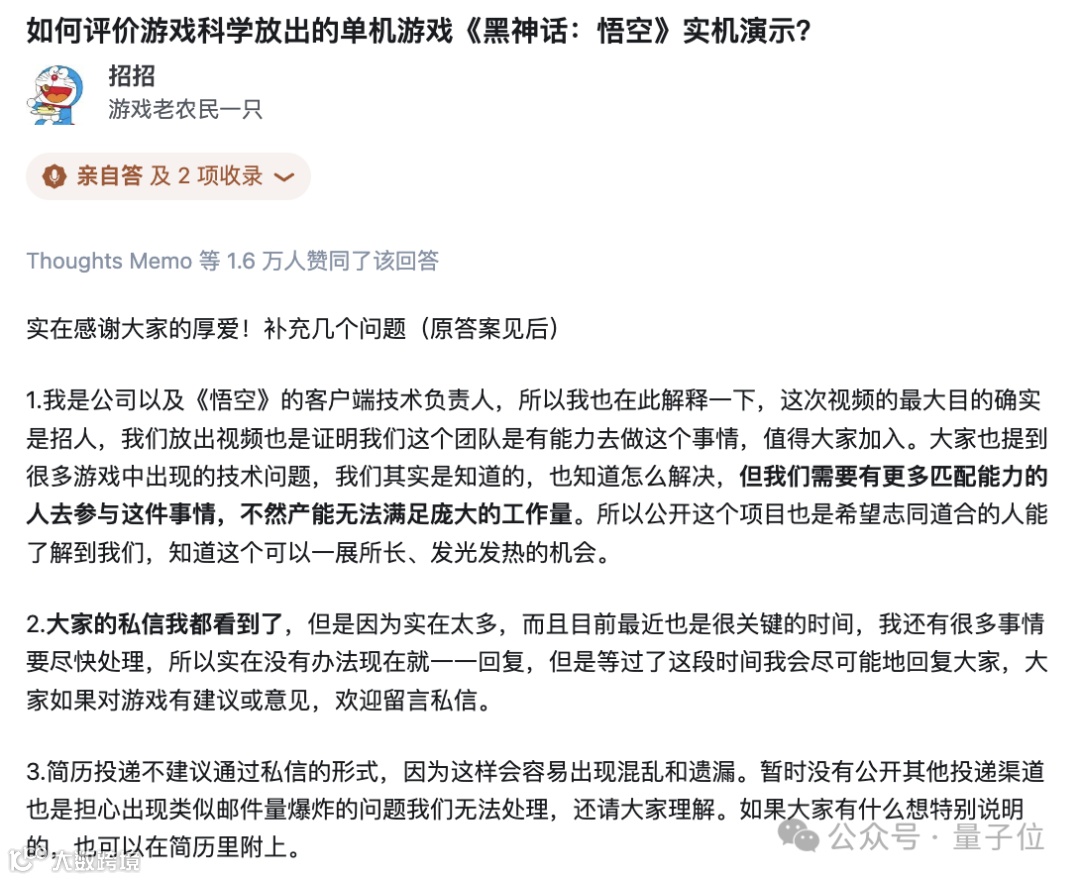 招文勇(网名“招招”)曾在知乎回应,首支预告片的展示最大目的其实就是招人: