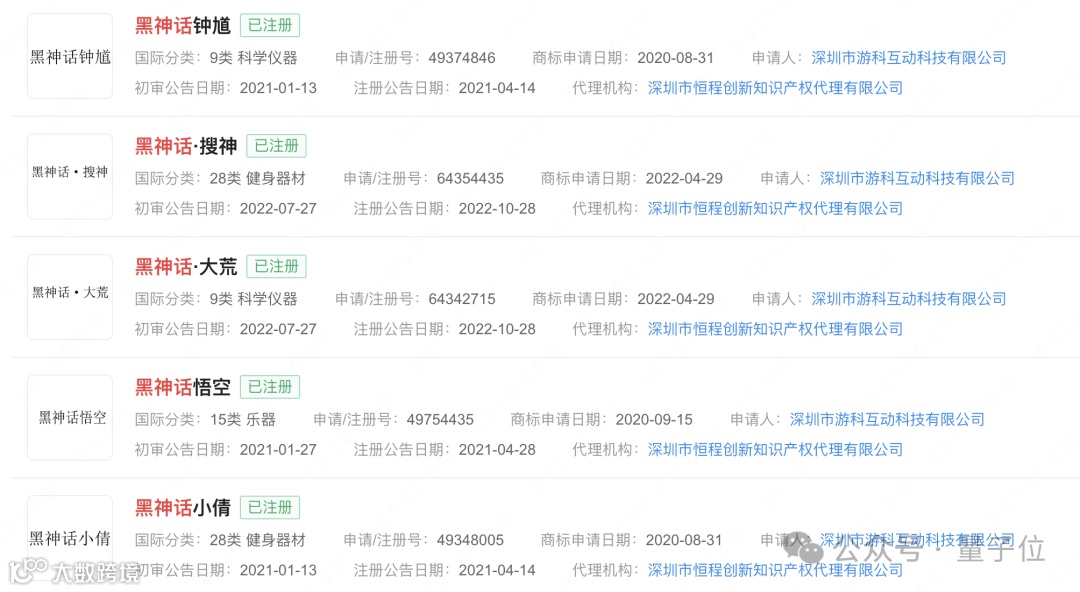 企查查显示,游戏科学(深圳市游科互动科技有限公司)老早就把黑神话钟馗/搜神/大荒/小倩等商标注册了(doge)。
