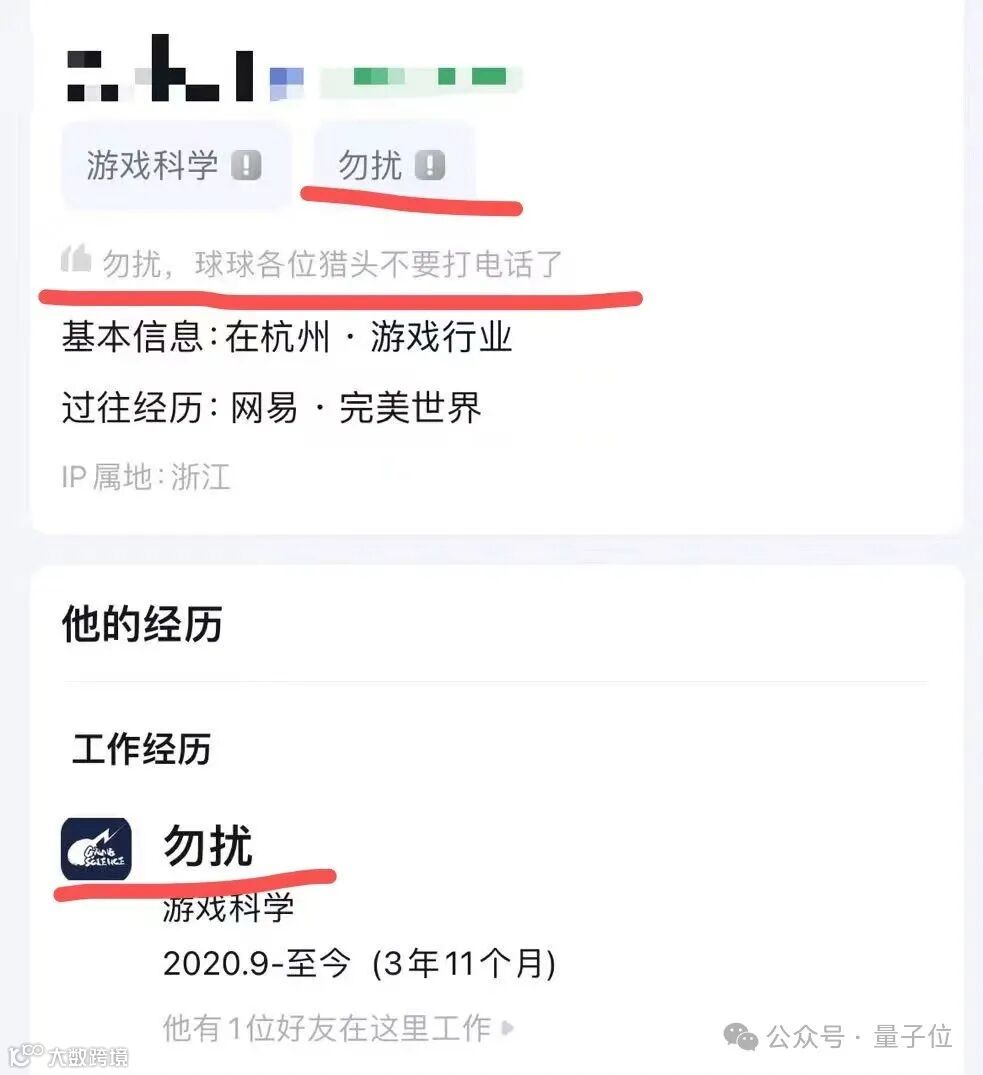 在一些招聘/社交平台上,不少游戏科学认证员工也直接表达了态度,纷纷备注不找工作,甚至直接把工作经历改成“勿扰”。