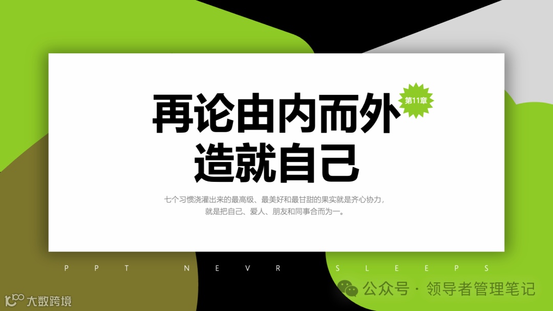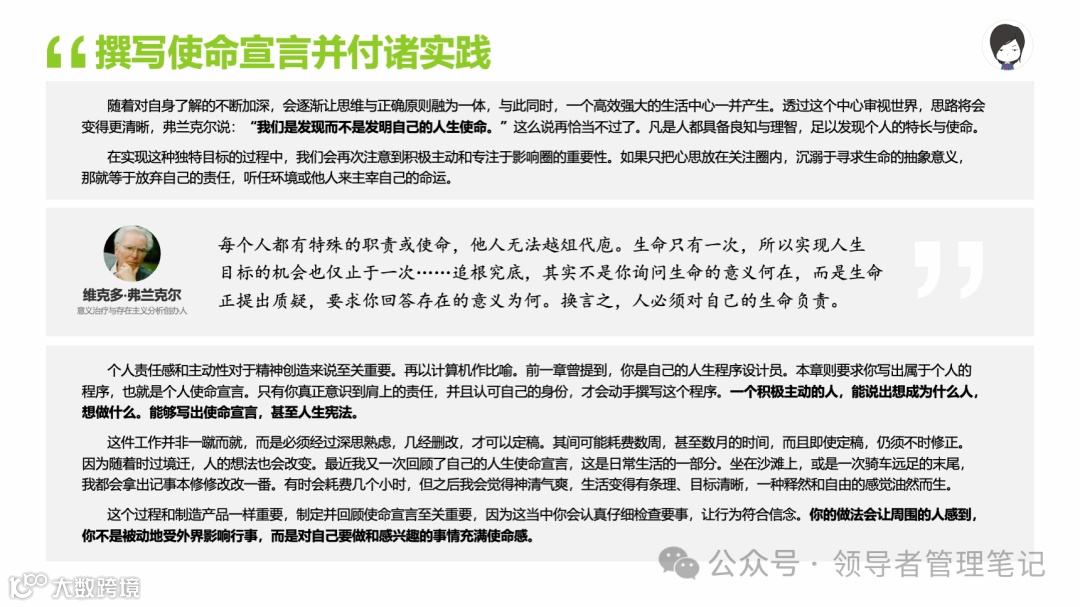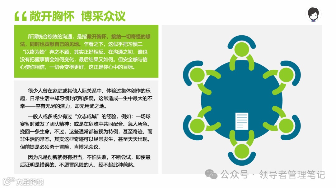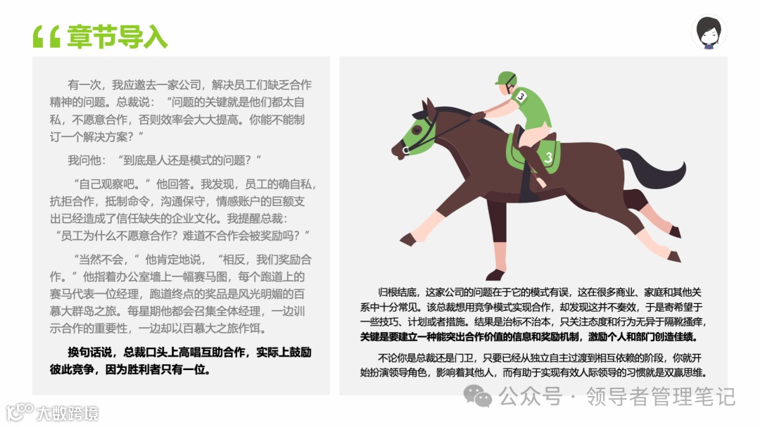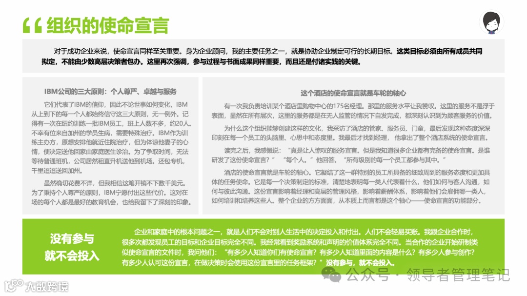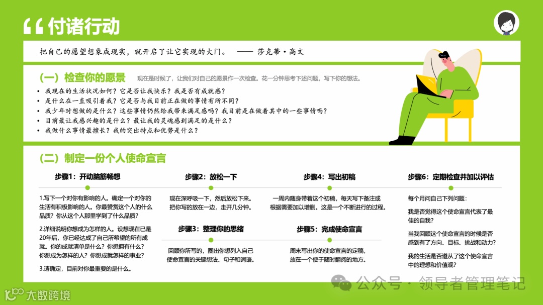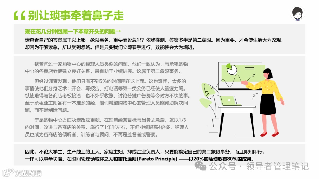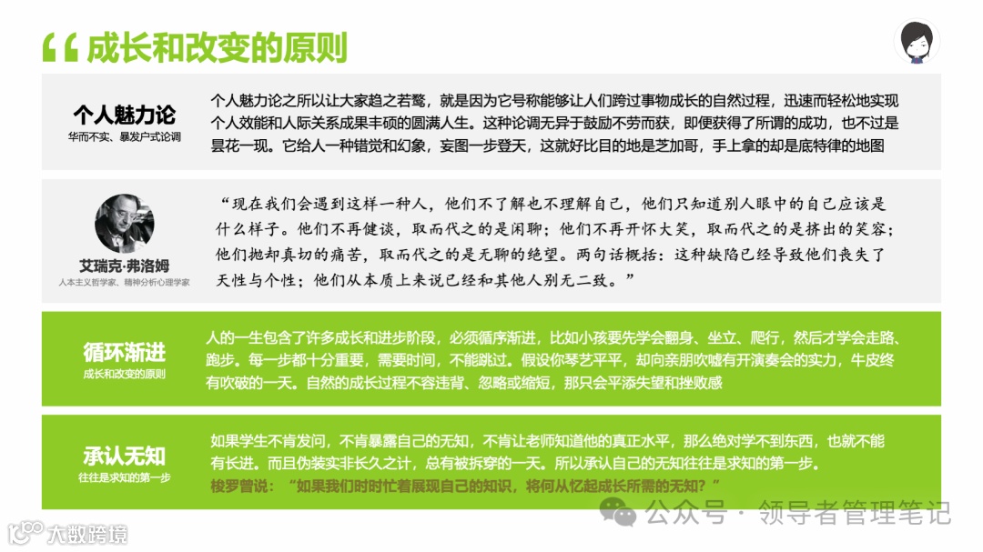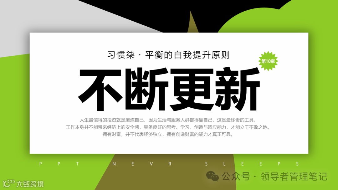 重要消息:微信公众号又改版了,即便我每天都按时发文,你也可能收不到信息,甚至可能永久失联。唯一的办法就是把“领导者管理笔记”公号设置星标☆,这样才能每天照常收到文章。获取本PPT请加(微信:New-leaders)免费获得。