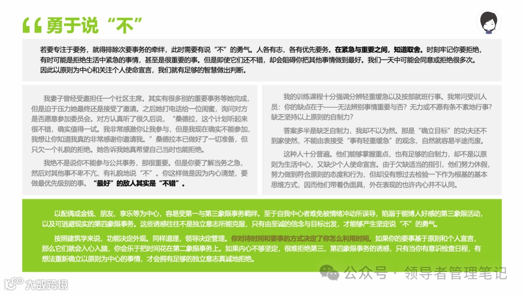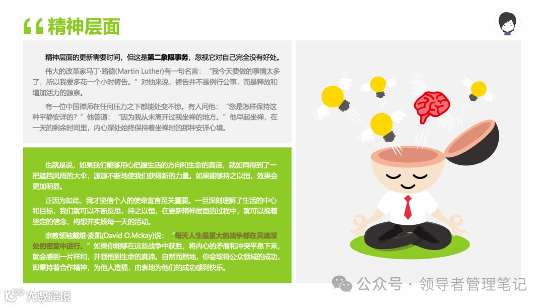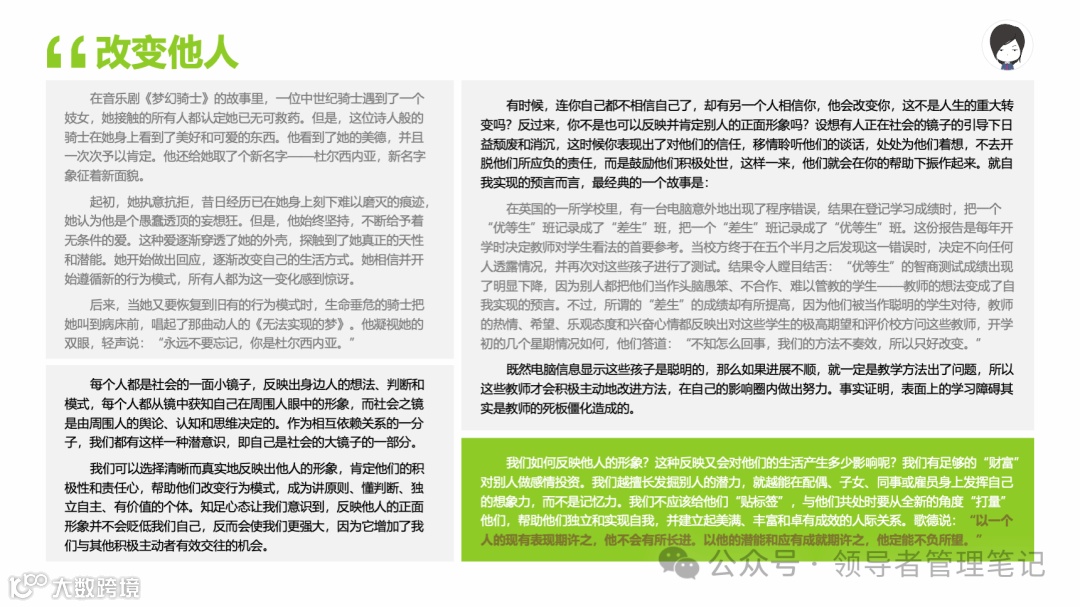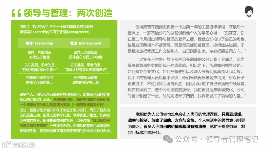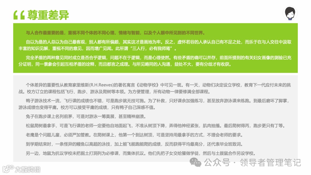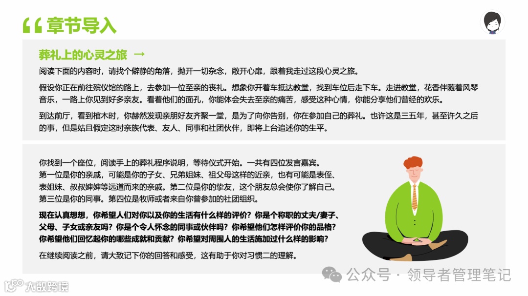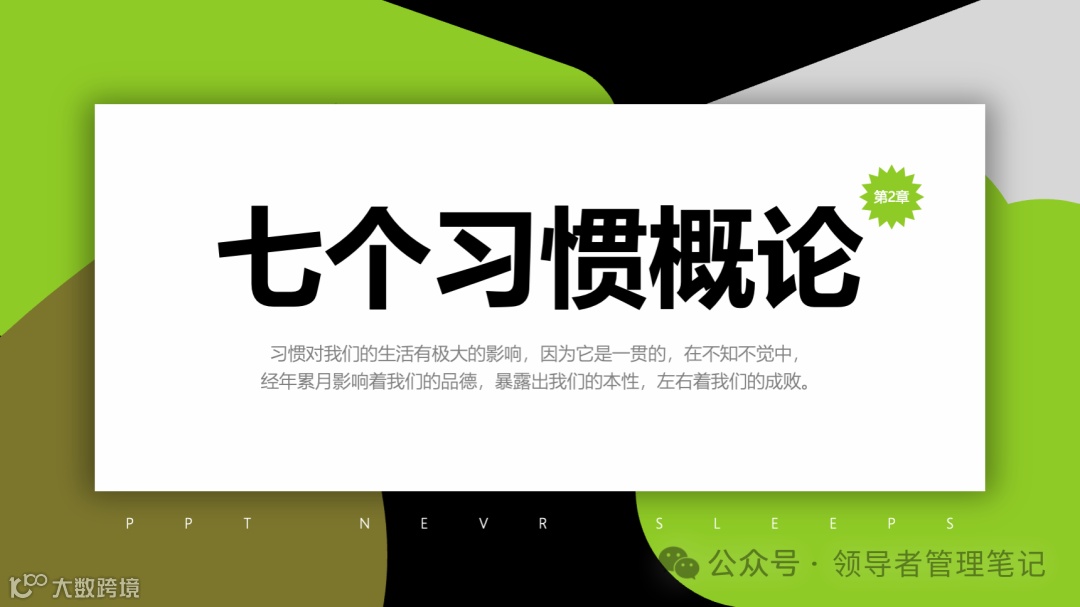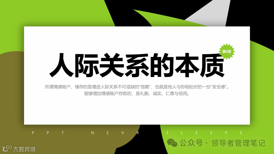 重要消息:微信公众号又改版了,即便我每天都按时发文,你也可能收不到信息,甚至可能永久失联。唯一的办法就是把“领导者管理笔记”公号设置星标☆,这样才能每天照常收到文章。获取本PPT请加(微信:New-leaders)免费获得。