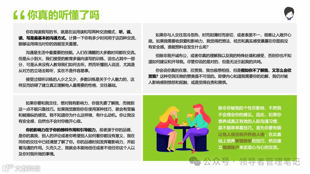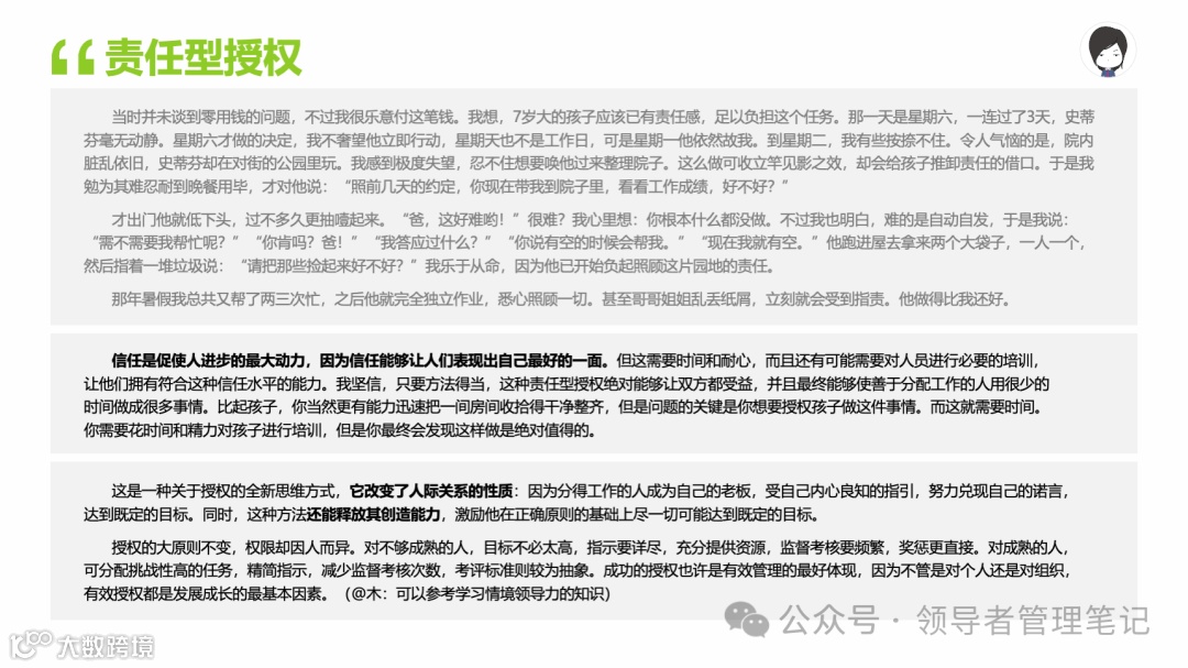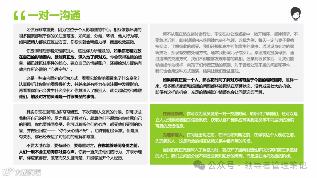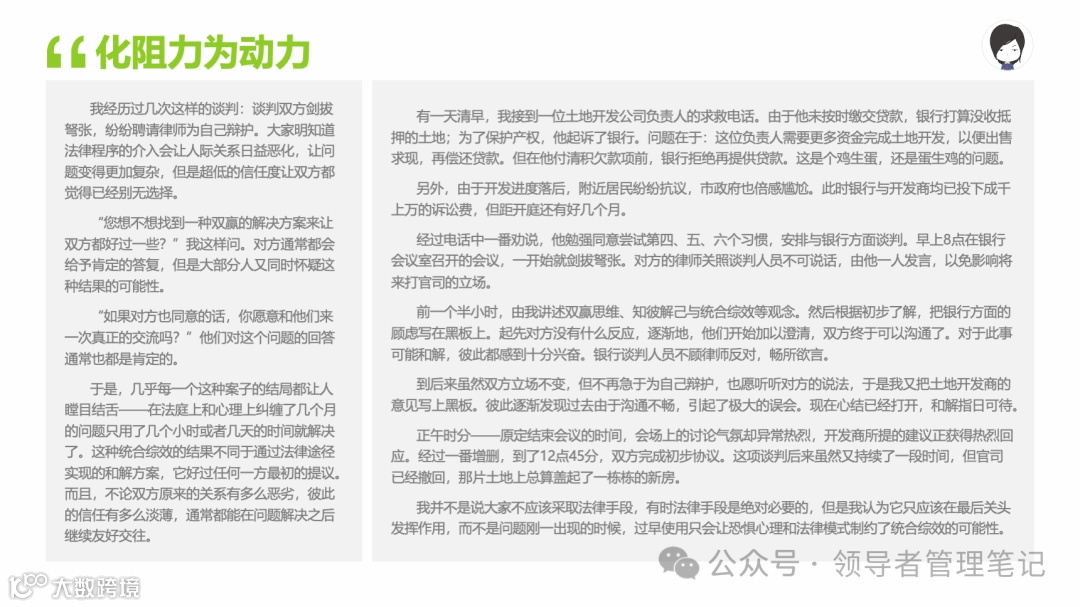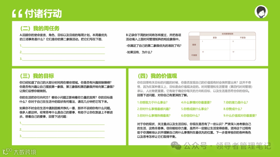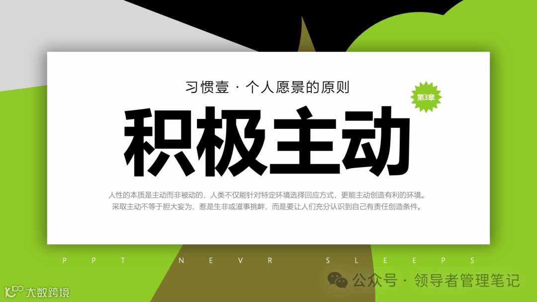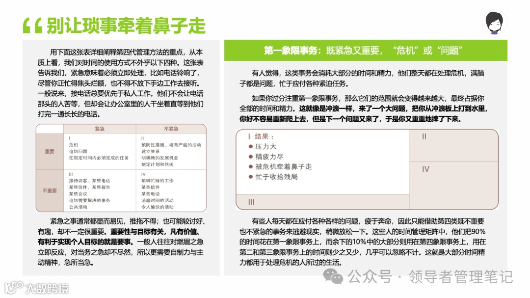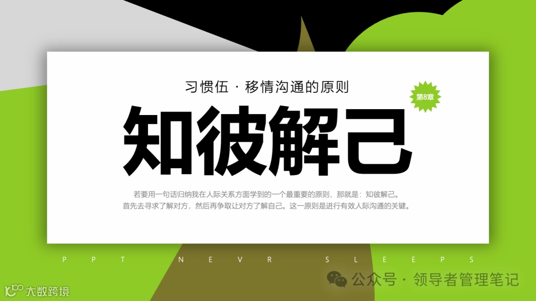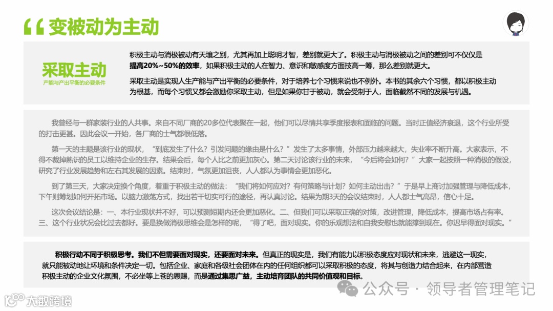 重要消息:微信公众号又改版了,即便我每天都按时发文,你也可能收不到信息,甚至可能永久失联。唯一的办法就是把“领导者管理笔记”公号设置星标☆,这样才能每天照常收到文章。获取本PPT请加(微信:New-leaders)免费获得。