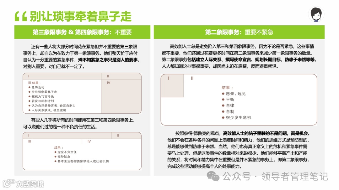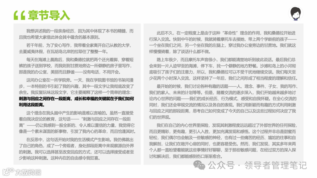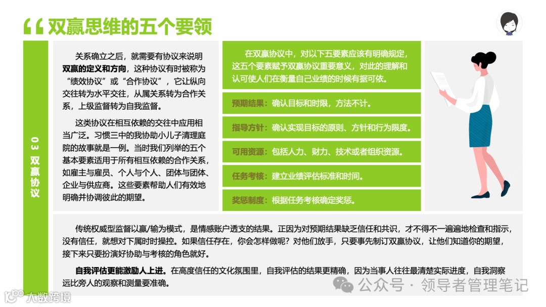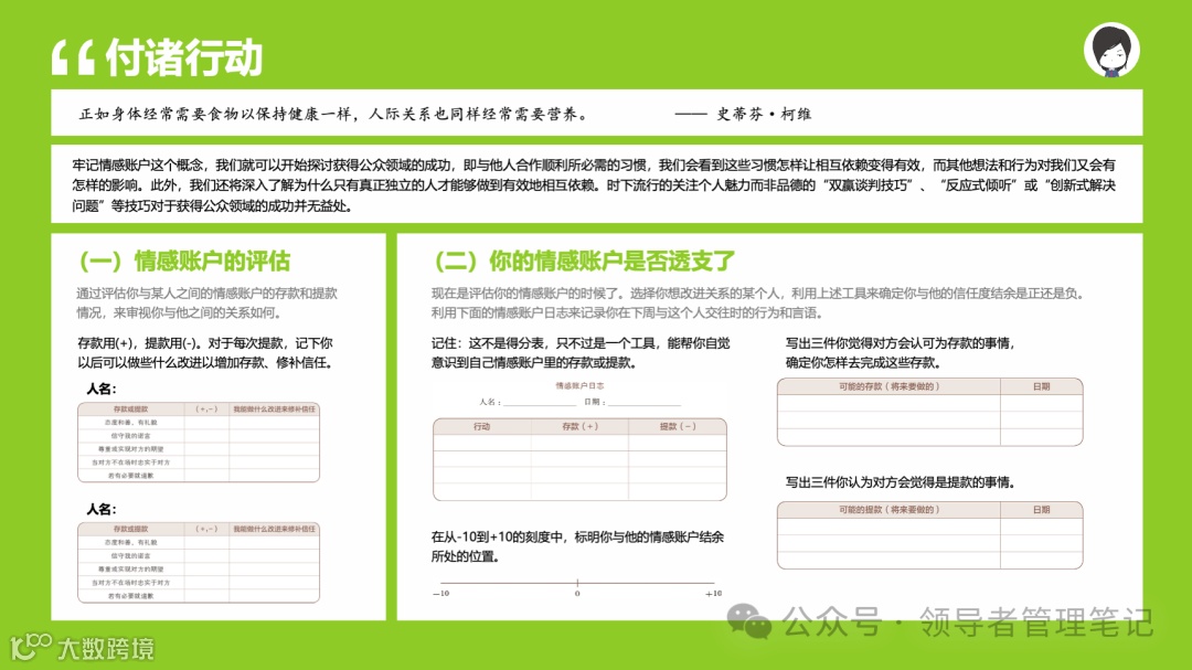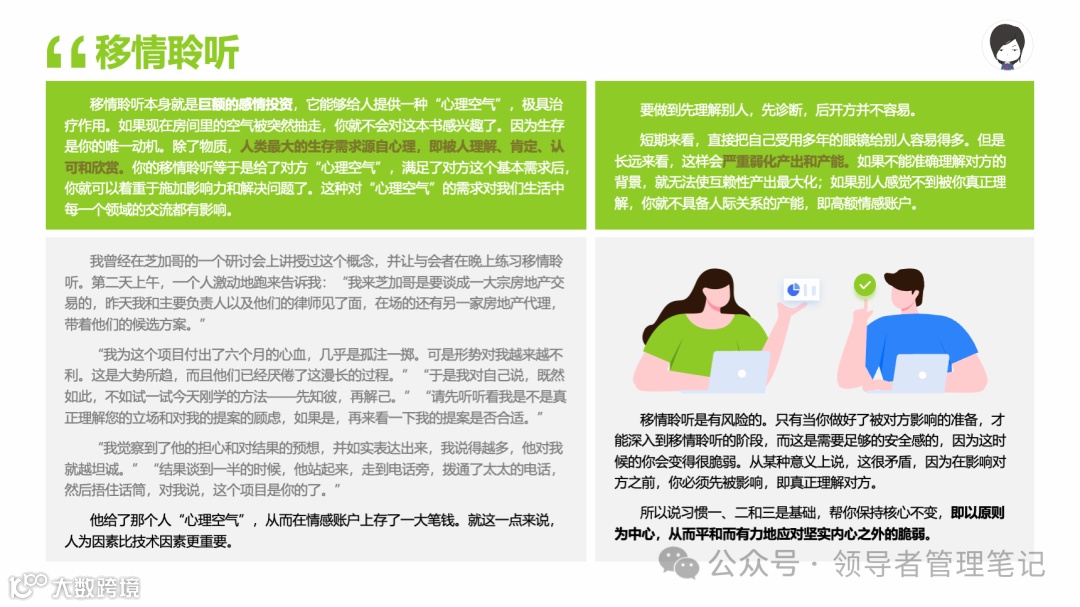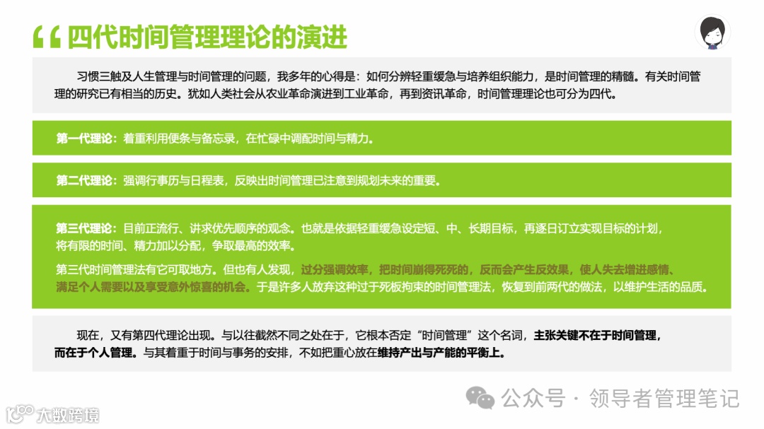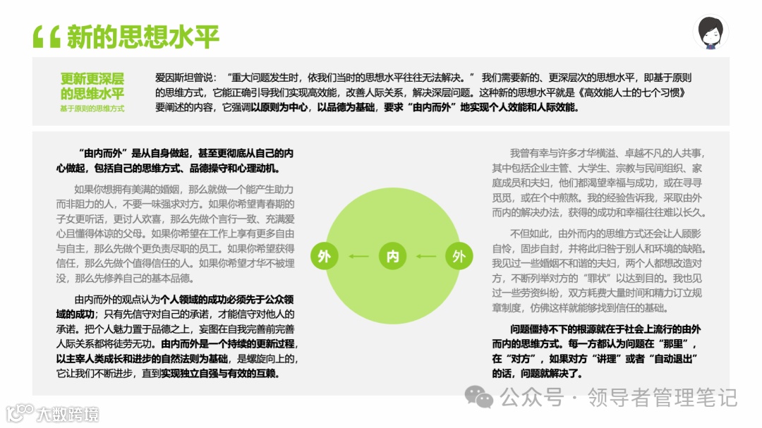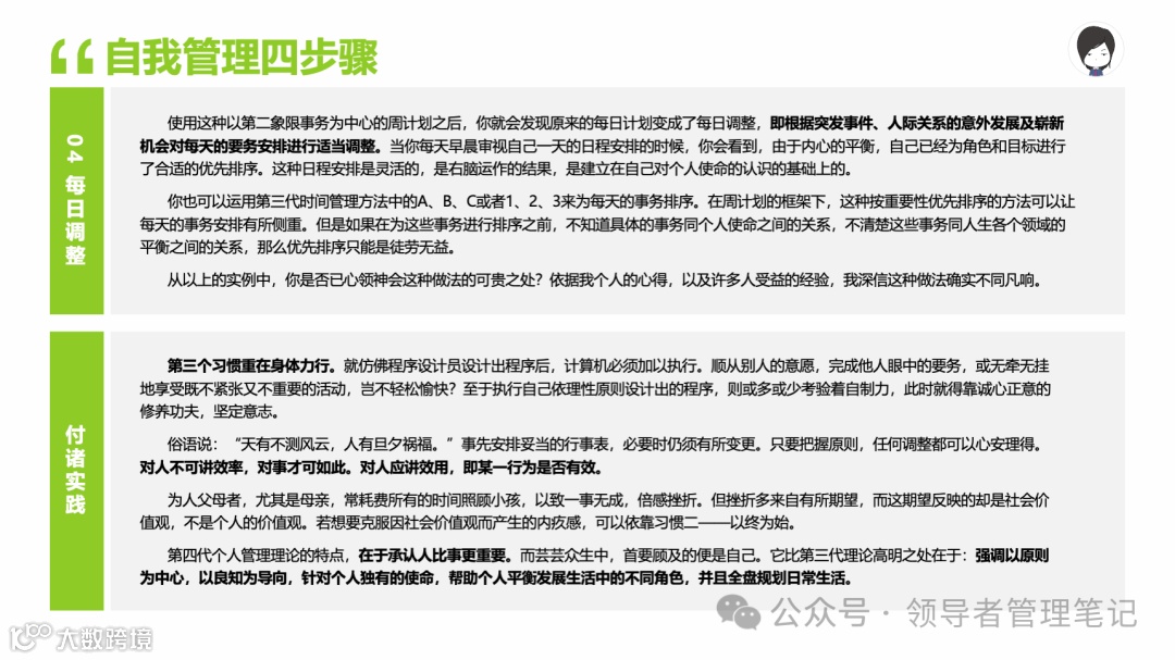 重要消息:微信公众号又改版了,即便我每天都按时发文,你也可能收不到信息,甚至可能永久失联。唯一的办法就是把“领导者管理笔记”公号设置星标☆,这样才能每天照常收到文章。获取本PPT请加(微信:New-leaders)免费获得。