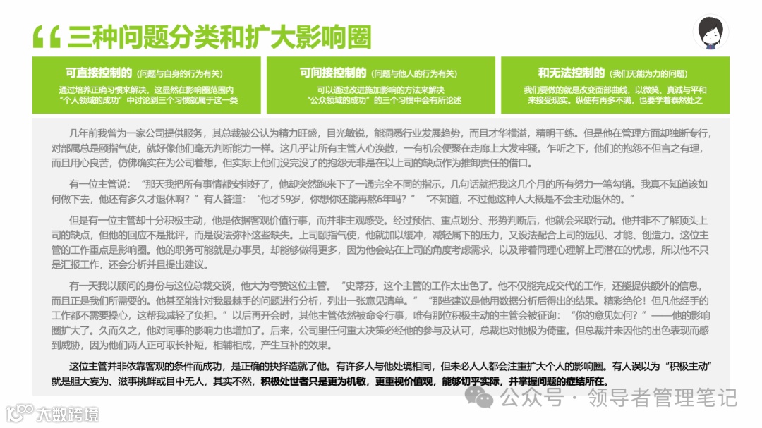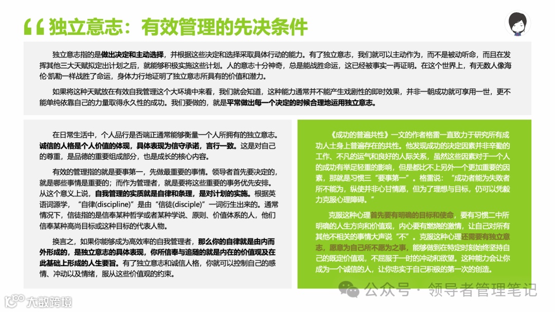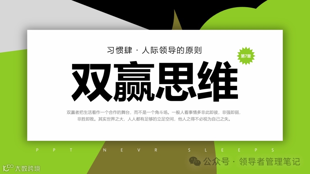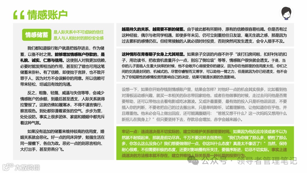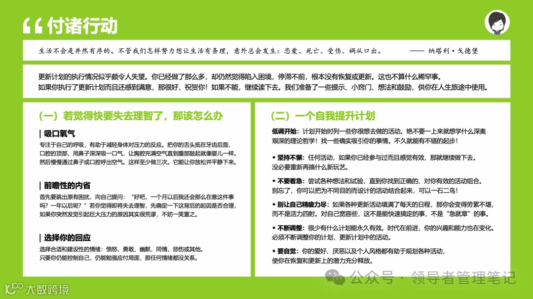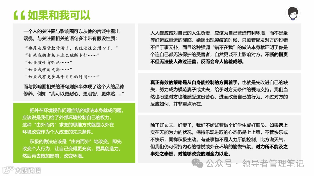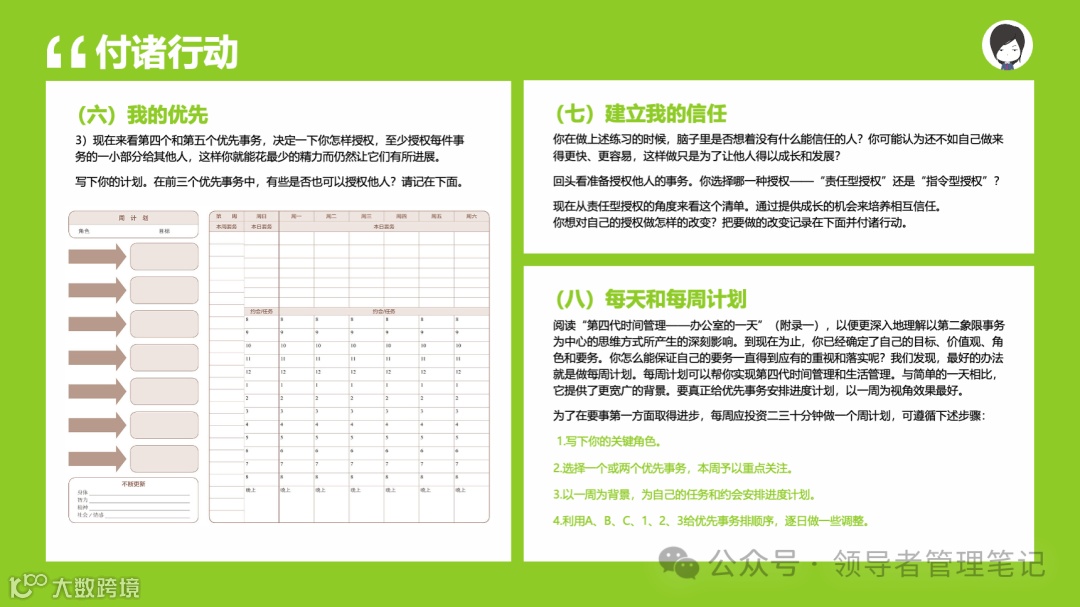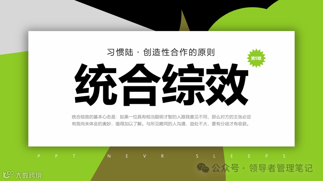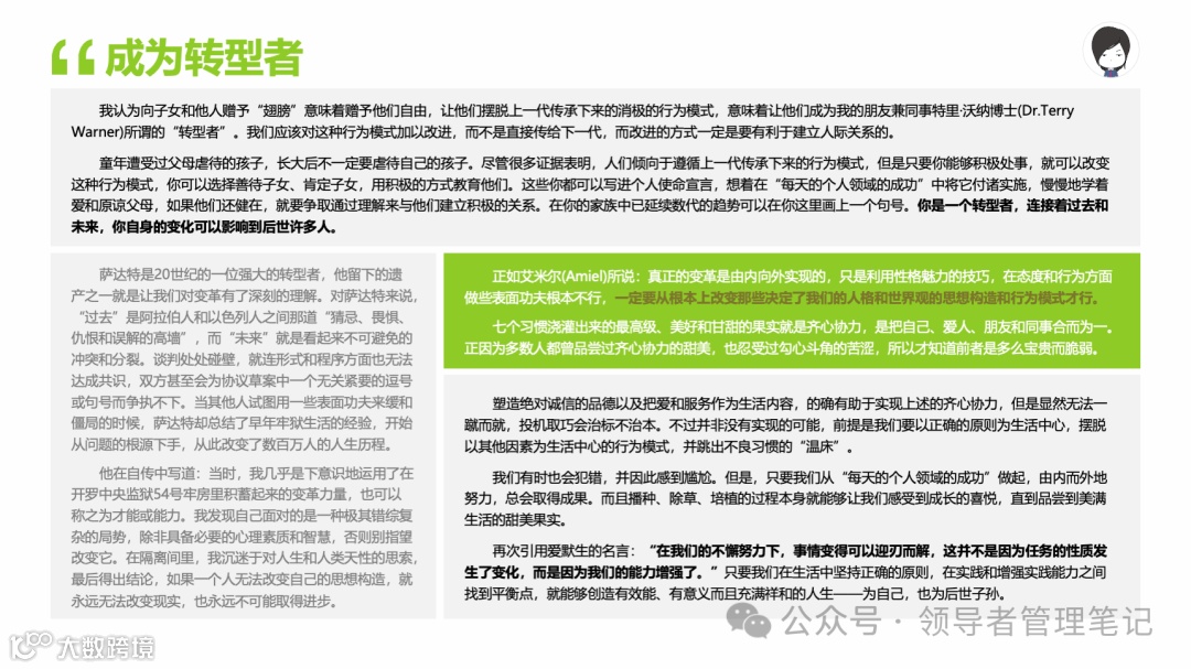 重要消息:微信公众号又改版了,即便我每天都按时发文,你也可能收不到信息,甚至可能永久失联。唯一的办法就是把“领导者管理笔记”公号设置星标☆,这样才能每天照常收到文章。获取本PPT请加(微信:New-leaders)免费获得。