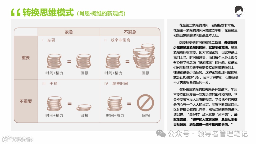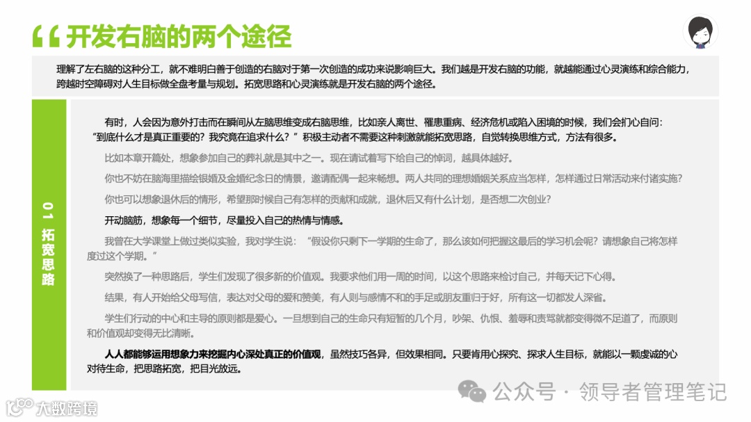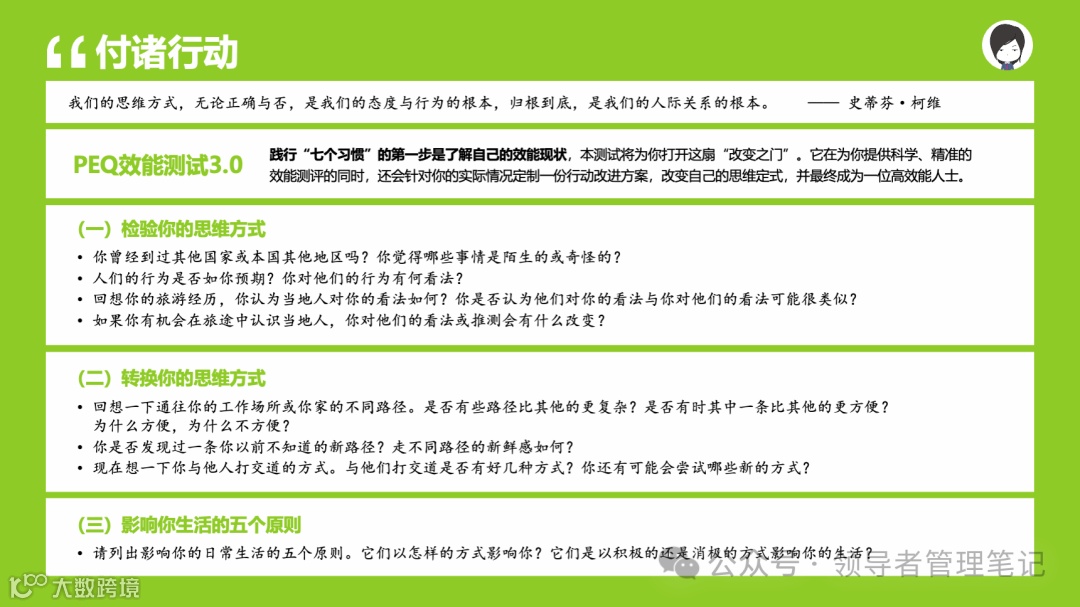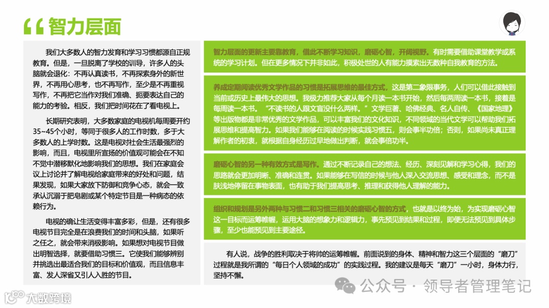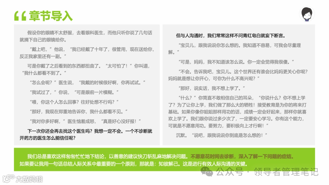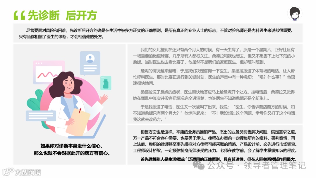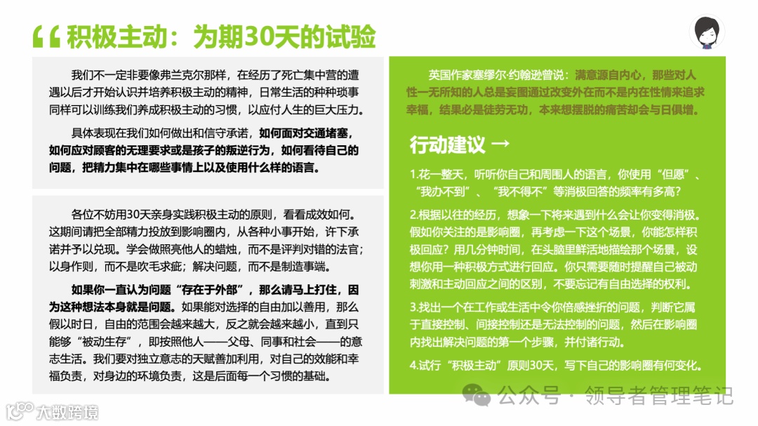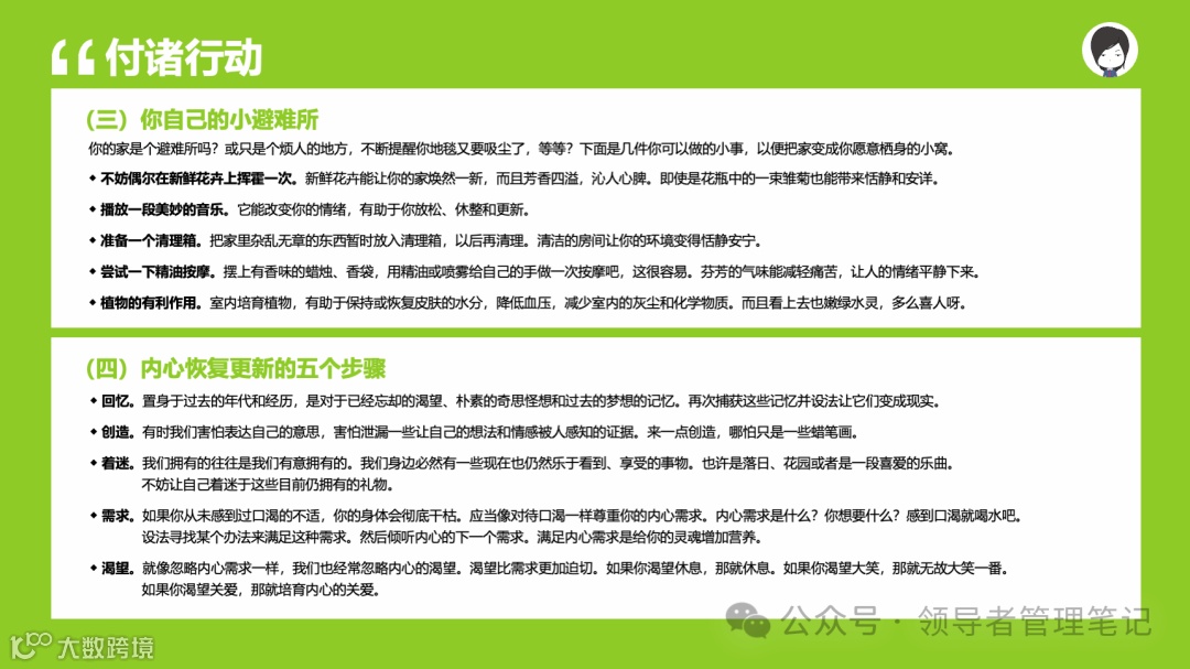 重要消息:微信公众号又改版了,即便我每天都按时发文,你也可能收不到信息,甚至可能永久失联。唯一的办法就是把“领导者管理笔记”公号设置星标☆,这样才能每天照常收到文章。获取本PPT请加(微信:New-leaders)免费获得。