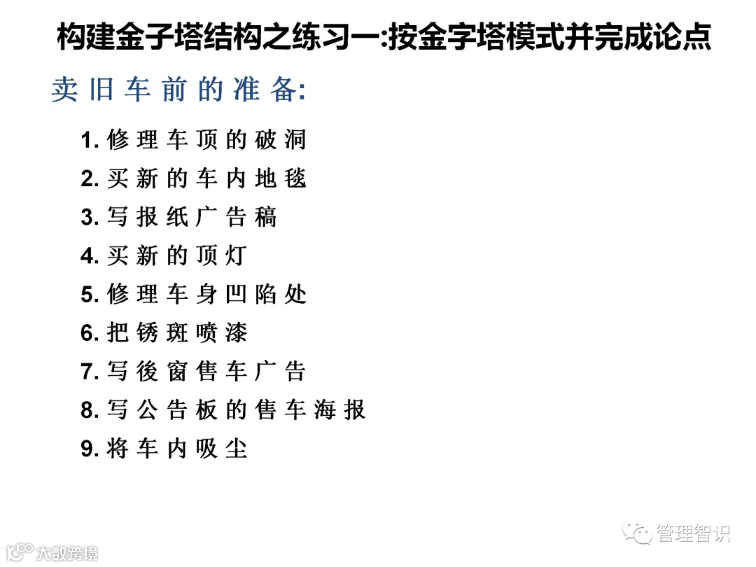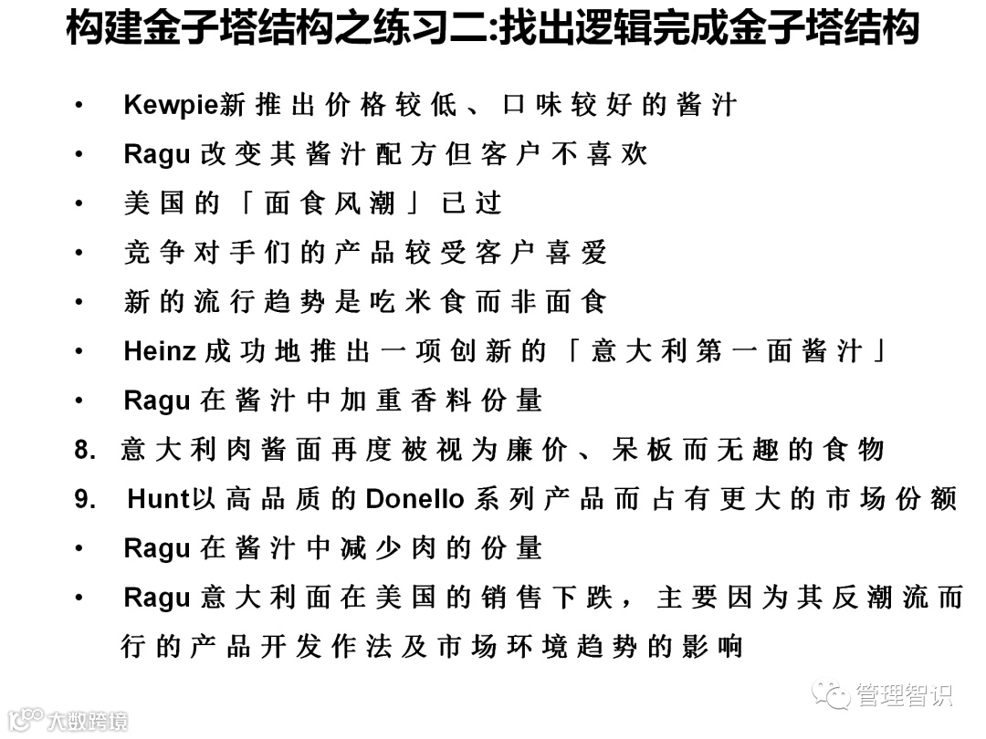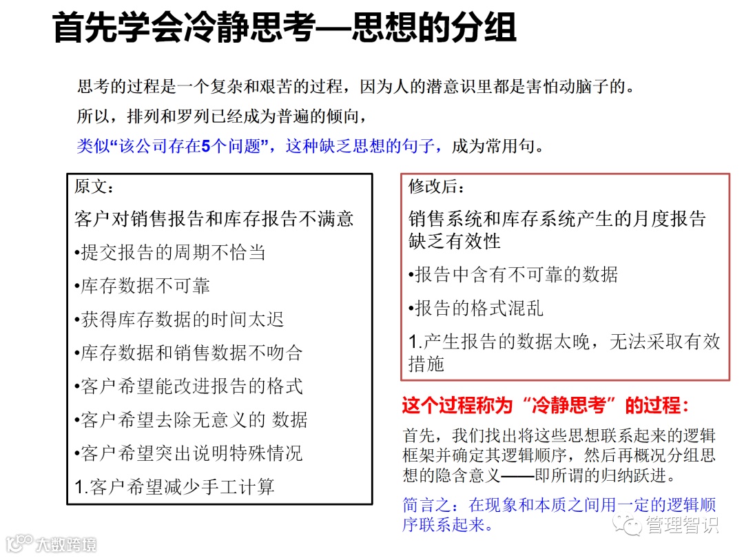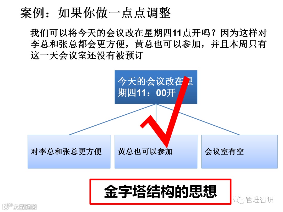 ►领导者说:★金字塔原理是一种重点突出、逻辑清晰、层次分明的思考方式,也是有效分析问题,得出解决方案的有用工具。