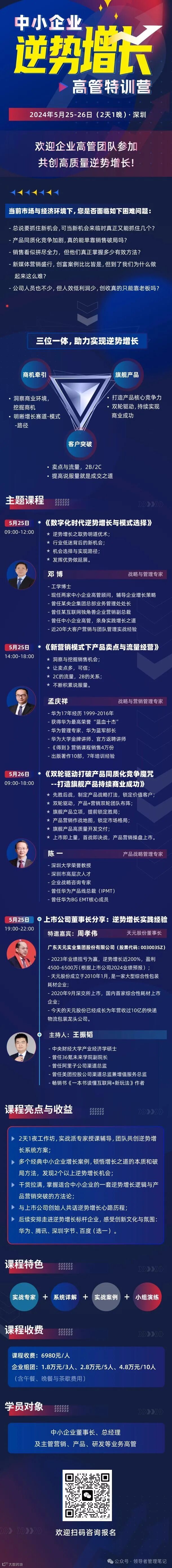 逆势如何增长?华为原高管及上市公司董事长联合讲授,5月25日深圳不见不散