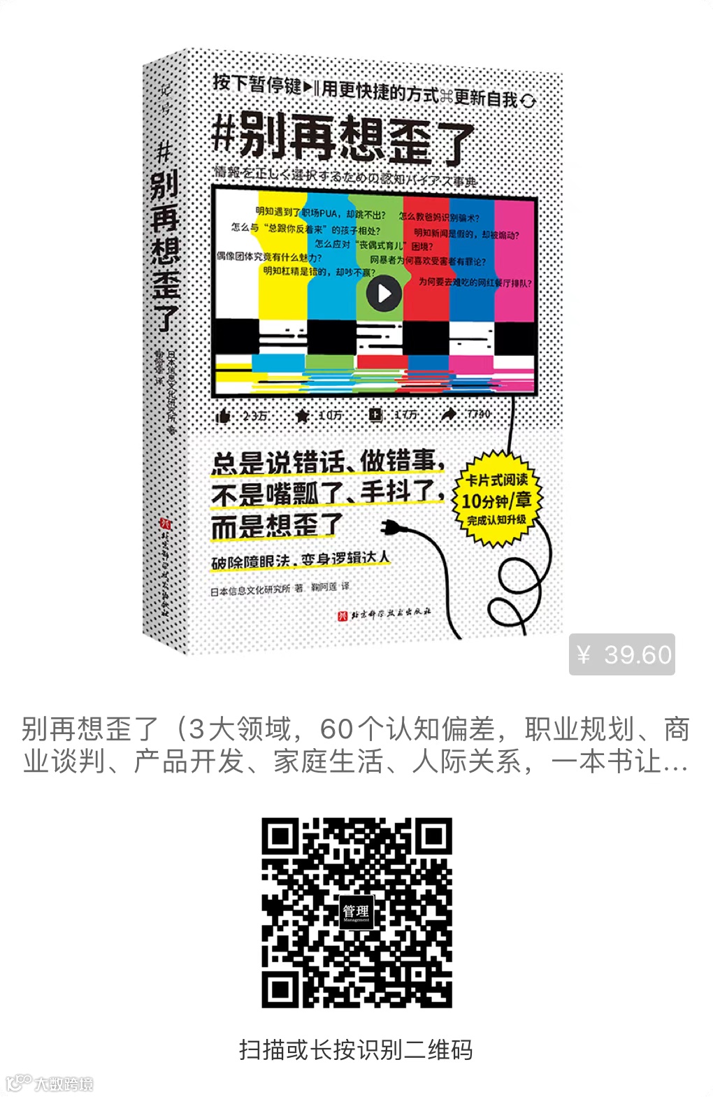 Ø 本书聚焦于日常问题,从逻辑学、认知科学、社会心理学3个角度出发,剖析了60种常见的认知偏差,并给出解决之道。