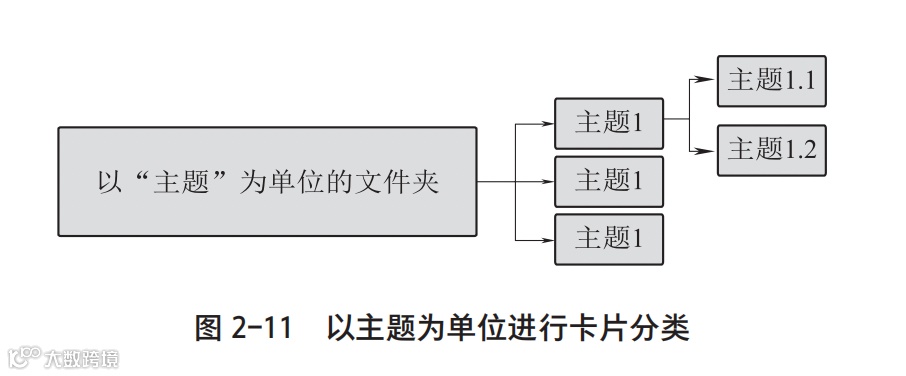 如果几张卡片讨论的是同一个话题,就可以建立一个子文件夹,把这几张卡片放到这个子文件夹里。这样一本书的卡片会存放得更有逻辑,也方便第二阶段的整理工作。