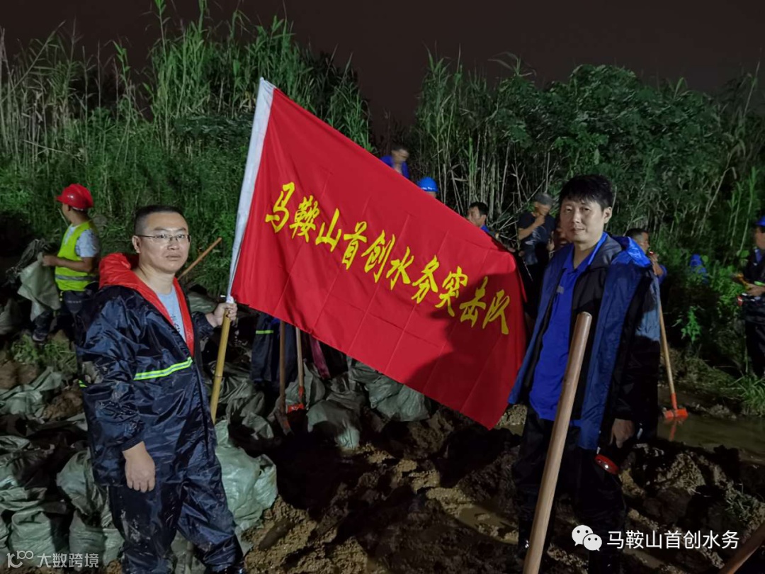 7月19日晚,马鞍山首创20名突击队员连续奋战6个多小时,及时帮助完成慈湖河小鹦鹉山段抢险任务;