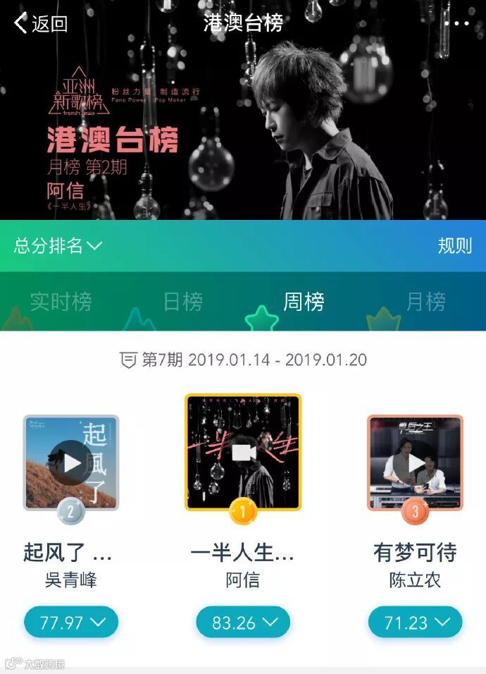 获得亚洲新歌榜港澳台榜周冠军